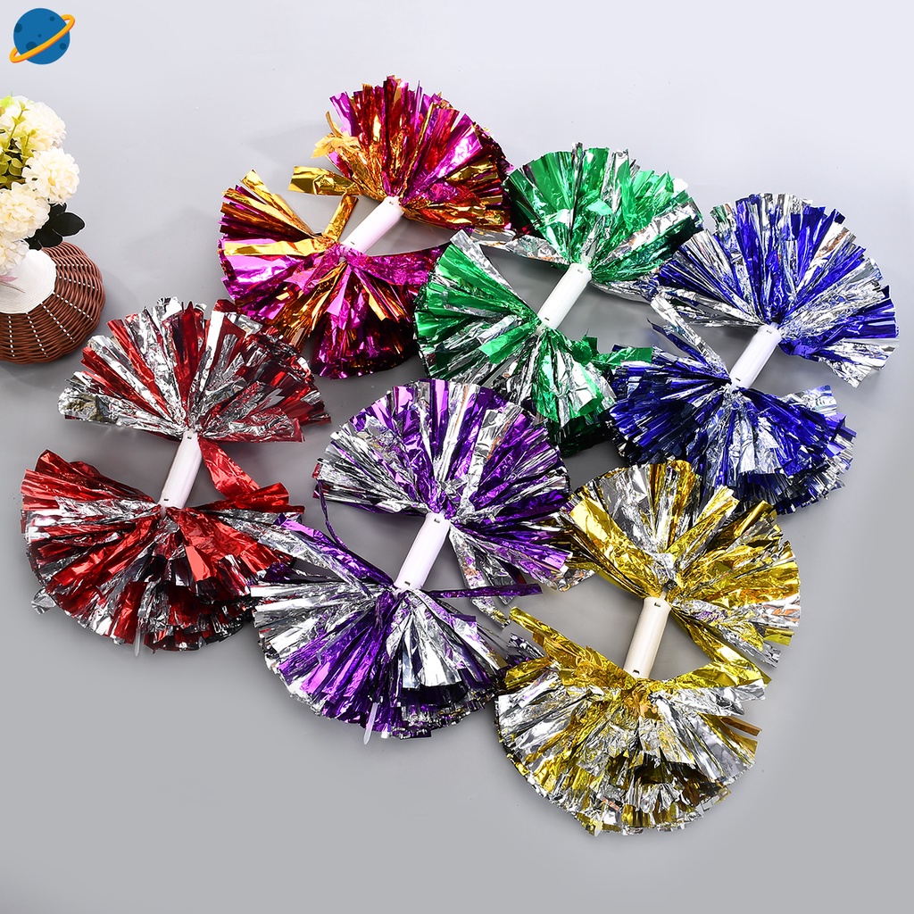 Mach dich bereit für die große Show! Diese bunten Cheerleader-Pompons (29 cm Durchmesser, 144 g pro Paar) sind perfekt für Tanz, Sport und Partys. Aus hochwertigem Kunststoff mit rutschfesten Griffen - leicht und langlebig. In verschiedenen Farbkombinationen erhältlich: Blau-Silber, Rot-Silber, Rosa-Gold und mehr. Ideal für Cheerleader-Teams, Sportevents, Schulaufführungen oder Geburtstagsfeiern. Ein absoluter Hingucker, der jede Performance aufpeppt. Ob für Kinder oder Erwachsene - mit diesen Pompons wird jede Veranstaltung zum Spektakel!