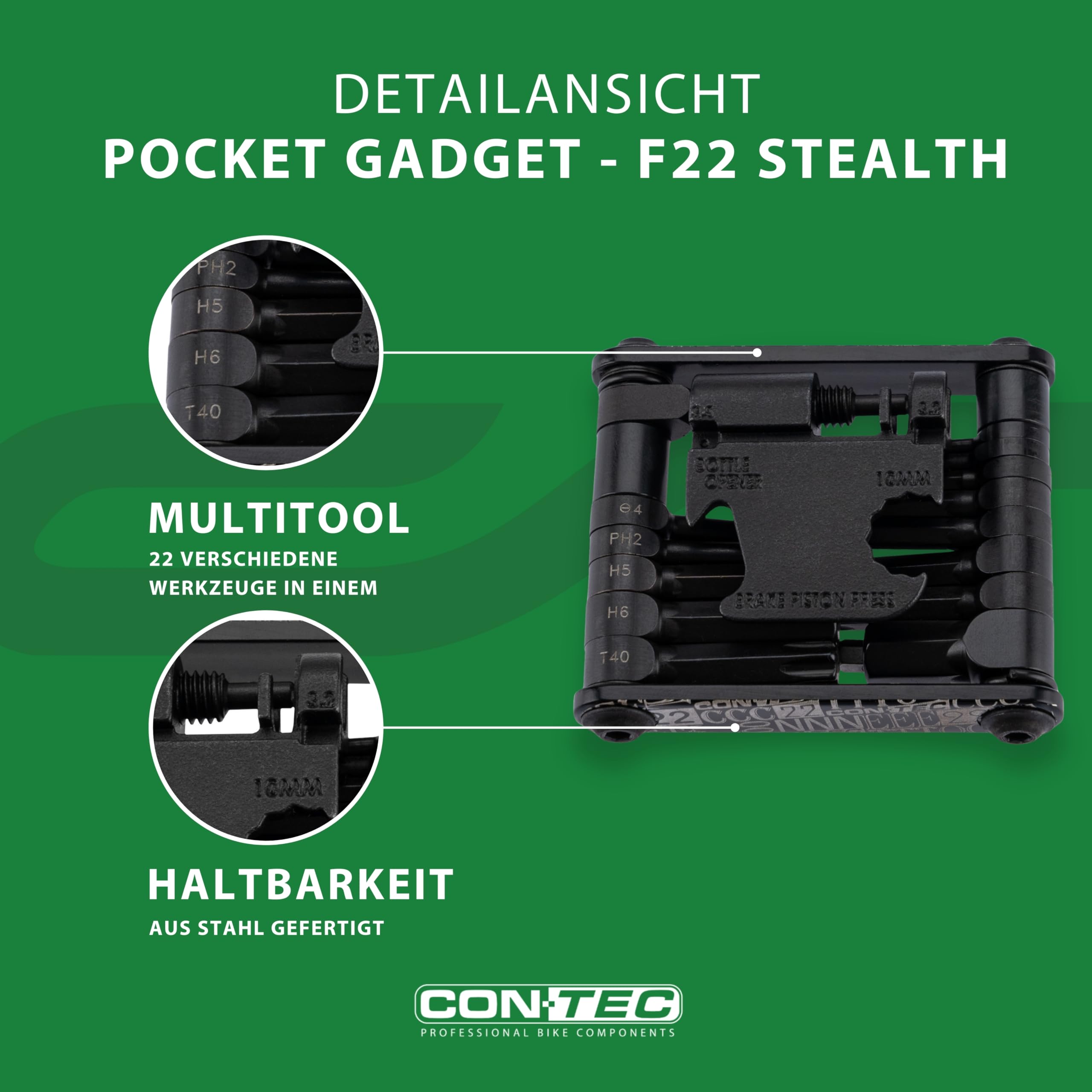Der perfekte Begleiter für jede Fahrradtour! Das CONTEC Buster 9 Multitool vereint 9 essentielle Werkzeuge in kompakten 34,3x53 mm. Enthalten sind Innensechskantschlüssel (2, 2,5, 3, 4, 5, 6, 8 mm) und Innensechsrundschlüssel (T25, T30) für alle gängigen Schrauben. Aus robustem Edelstahl - rostfrei und langlebig. Passt in jede Satteltasche oder Jackentasche. Ideal für schnelle Reparaturen unterwegs: Bremse justieren, Lenker nachziehen oder Pedale einstellen. Auch für Haushalt und DIY-Projekte geeignet. Mit CONTEC Qualität bist du immer vorbereitet - für sorgenfreie Fahrradabenteuer!