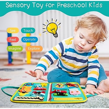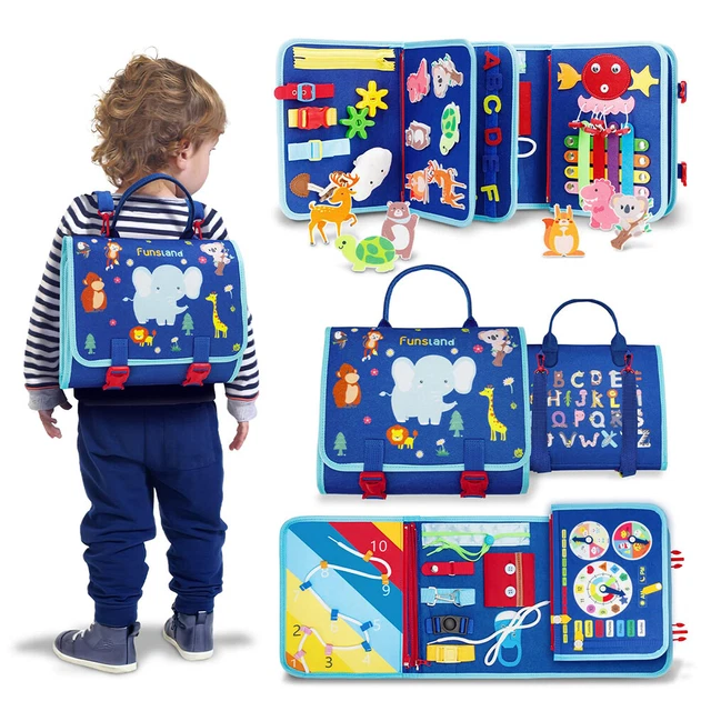 Wow, dieses Busy Board ist perfekt für neugierige kleine Entdecker! Ab 1 Jahr können Kinder hier nach Herzenslust knöpfen, schnallen, reißverschlüssen und klettverschlüssen - alles aus weichem Stoff ohne scharfe Ecken. Super sicher durch verstärkte Nähte, sodass nichts abreißt. Perfekt für die feinmotorische Entwicklung und zum Lernen von Alltagsfähigkeiten. Das kompakte Design passt in jede Wickel- oder Schultasche - ideal für Autofahrten, Flugreisen oder Wartezeiten. Und das Beste: Es ist superleise! Wenn du mal eine Pause brauchst, beschäftigt sich dein Kind stundenlang mit diesem Activity Board. Toll für die Eltern-Kind-Zeit - gemeinsam Buchstaben lernen, zeichnen und spielen. So wird Lernen zum Spiel! Ein pädagogisch wertvolles Geschenk für Jungen und Mädchen, das nicht nur Spaß macht, sondern auch die Entwicklung fördert. Einfach unverzichtbar für alle Eltern von Kleinkindern!