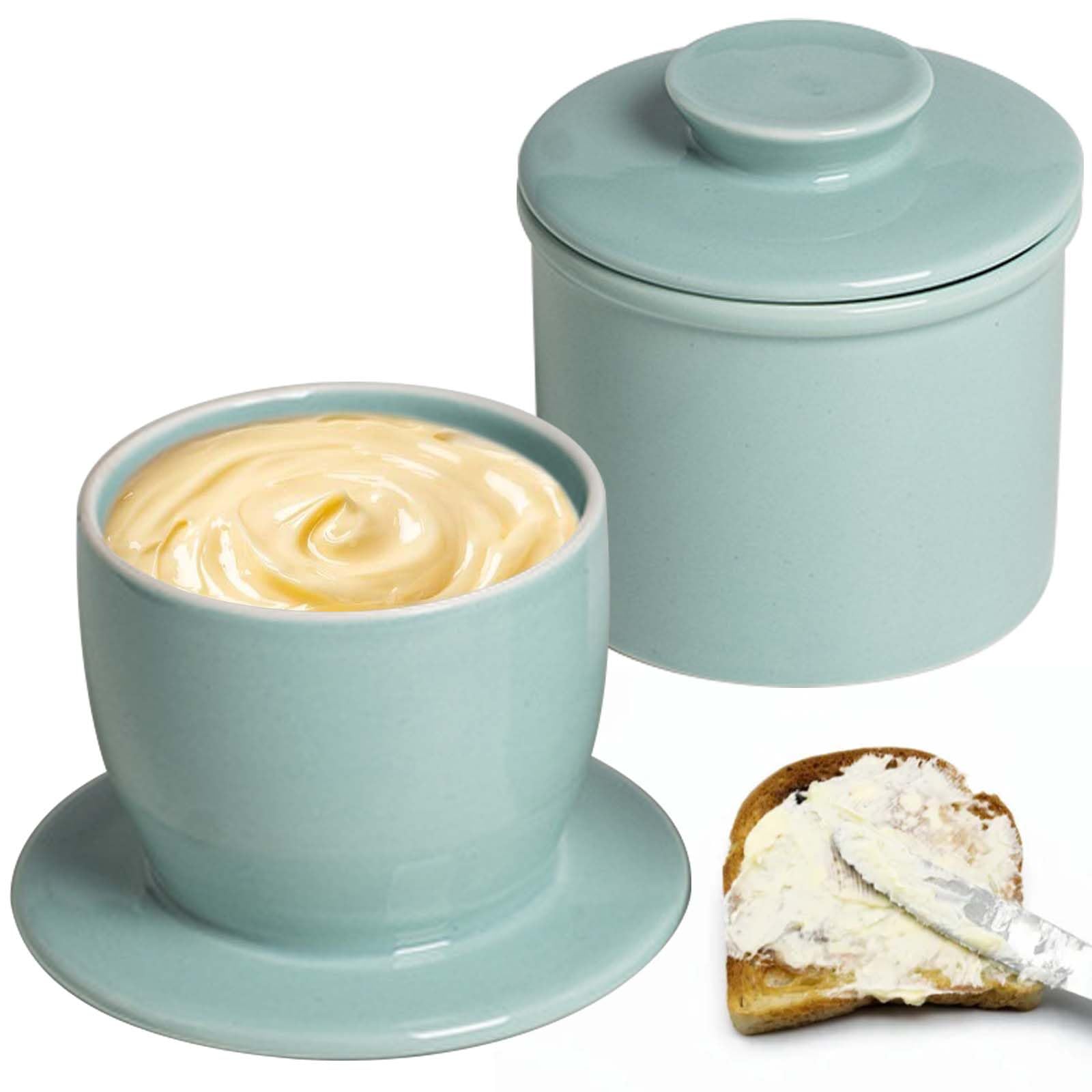 Butter-Liebhaber, hört zu! Diese keramische Butterdose ist ein Game-Changer für deine Küche. Keine harte Butter mehr - dein Brotaufstrich bleibt immer perfekt streichfähig! So funktioniert's: Du füllst weiche Butter in die Glocke und gibst kaltes Wasser in den Untersetzer. Das Wasser bildet eine natürliche Versiegelung - keine Luft kommt ran, also bleibt die Butter frisch. Unglaublich aber wahr: Ungesalzene Butter hält sich bis zu 10 Tage, gesalzene sogar 30 Tage! Ohne Kühlschrank! Die Dose aus feinster Keramik passt super in jede Küche - im blauen Design sieht sie besonders hübsch aus. Maße: 11,5x11 cm - da passt eine ganze Packung Butter rein. Einfach zu reinigen und spülmaschinenfest. Perfektes Geschenk für Foodies!