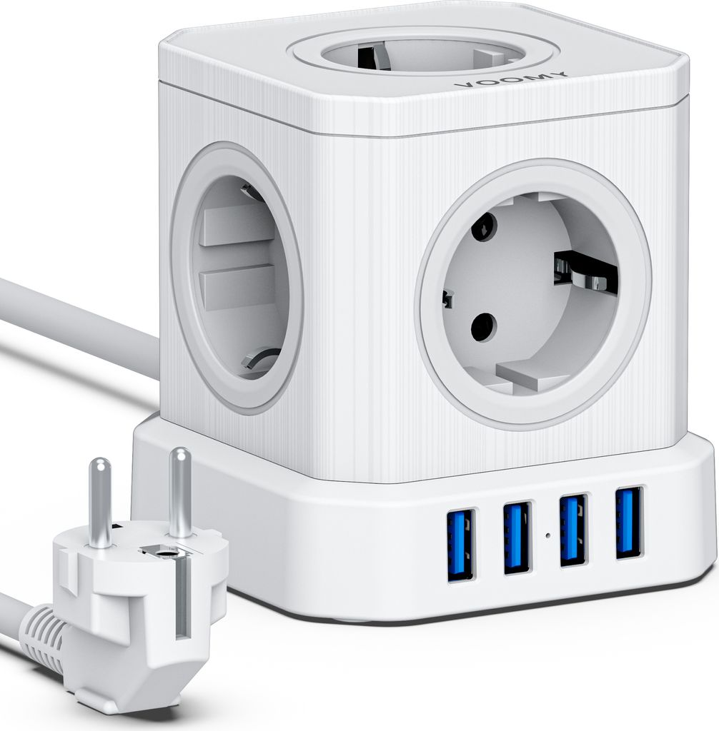 Platzprobleme an der Steckdose? 🔌 Dieser coole Steckdosenwürfel mit USB-Anschlüssen ist die Rettung für Büro, Wohnzimmer oder Reise! Mit 4 Steckdosen und modernen USB-Ports hast du alles unter Kontrolle.