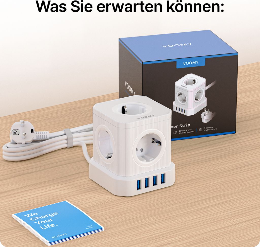 Egal ob fürs Homeoffice, die Küche oder unterwegs im Hotel - dieser Steckdosenwürfel ist immer der richtige Begleiter. Die USB-Anschlüsse laden dein Smartphone, Tablet und andere Geräte schnell und sicher.