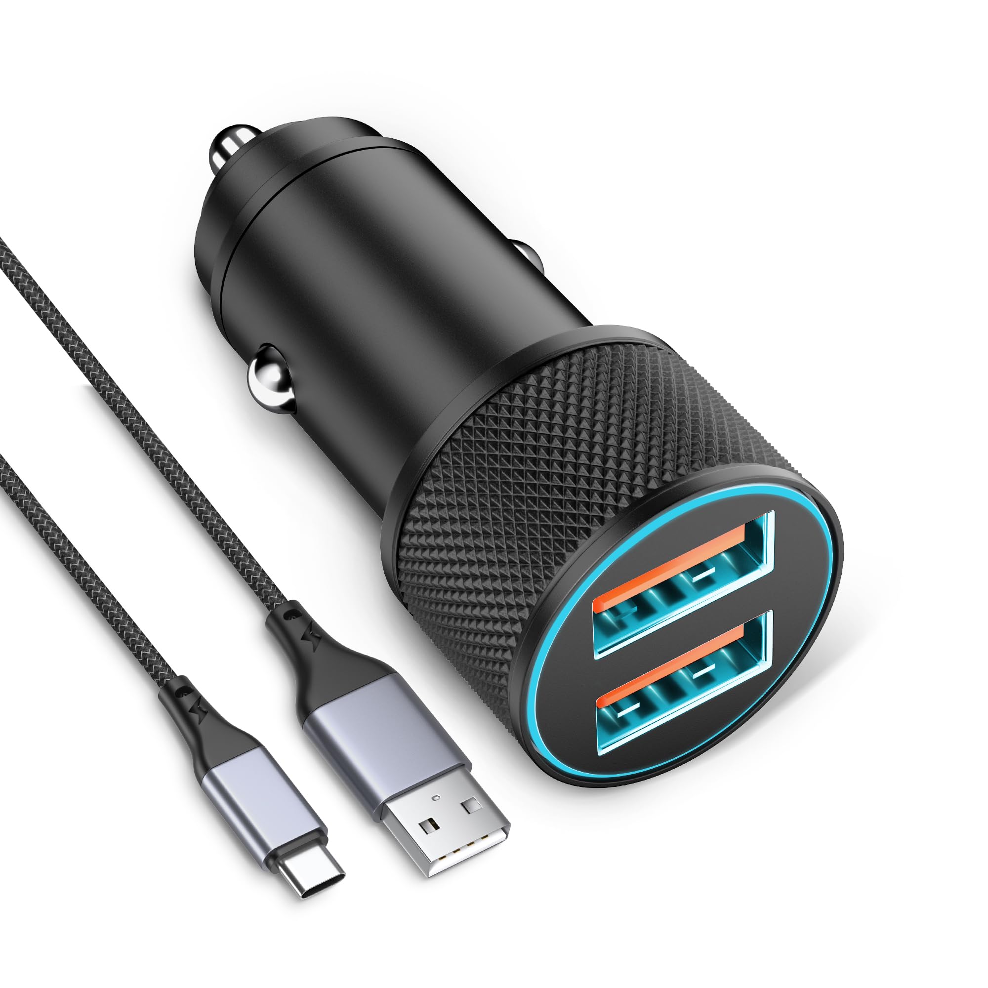 • 5-in-1 Auto Ladegerät USB C - 75W Schnellladegerät Mit IPhone Kabel - 12V-24V Fahrzeuge
