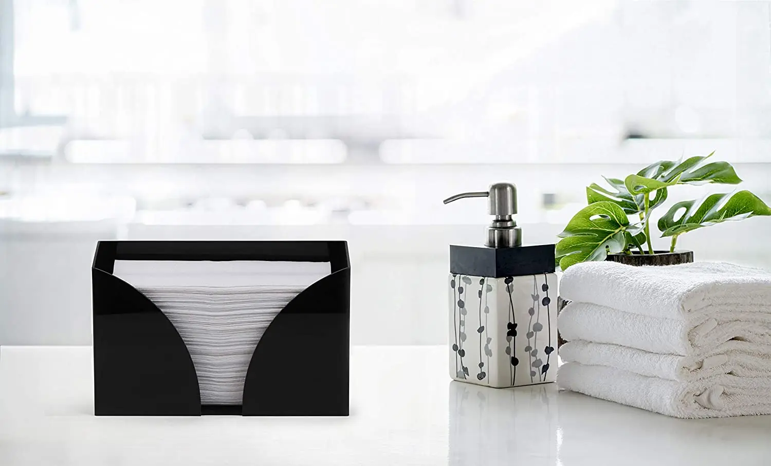 Hey, dieser Acryl-Papierhandtuchspender ist genau das, was jede Küche oder jedes Bad braucht! Mit den Maßen 27,5 x 12,7 x 10,5 cm passt der schwarze Halter perfekt auf jede Arbeitsplatte oder jeden Tisch, ohne viel Platz wegzunehmen. Das beste daran? Der nimmt so gut wie alle Handtucharten - C-Falz, Tri-Falz, Z-Falz, du name it! Aus 5mm starkem Acryl gefertigt, ist der Spender richtig robust und hält auch mal was aus. Der Schlitz oben ist extra breit, damit du die Handtücher easy rausziehen kannst, ohne dass sie reißen. Und die Bedienung? Kinderleicht! Einfach die Standard-Einzelfaltpackungen rein, und schon kann's losgehen. Du greifst immer nur ein Handtuch, ohne die anderen zu stören - kein Gefummel mehr! Der schlichte Style passt zu jeder Einrichtung, ob modern oder klassisch. Ob in der Küche, im Gäste-WC oder sogar im Büro - dieser Spender hält alles ordentlich und griffbereit. Besonders praktisch: Du kannst ihn entweder einfach aufstellen oder an der Wand montieren. Für 150 Blatt Z-Falz oder C-Falz Handtücher reicht der Platz locker. Einfach ein Must-have für alle, die Ordnung lieben!