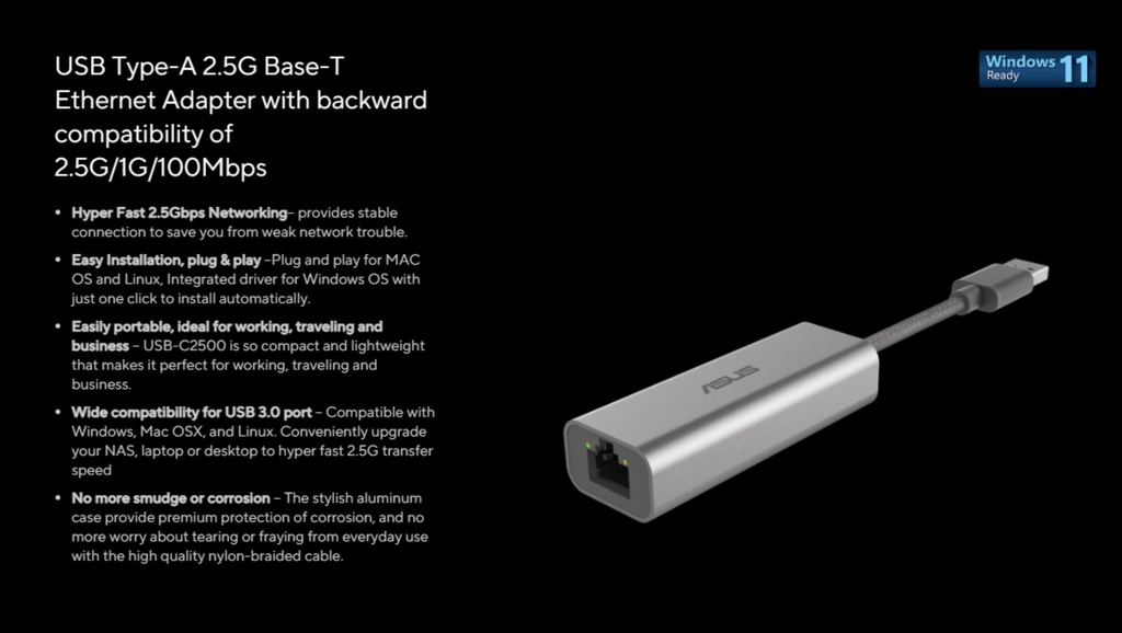 Ruckelfreies Streaming, lagfreies Gaming und superschnelle Downloads - mit diesem ASUS Ethernet-Adapter holst du das Maximum aus deiner Internetverbindung. Bis zu 2,5 Gbit/s Geschwindigkeit, also 2,5 mal schneller als normale Gigabit-Adapter. Einfach per USB-C anschließen und sofort loslegen, keine Treiberinstallation nötig. Super kompakt und leicht - ideal für unterwegs, Geschäftsreisen oder wenn das Hotel-WLAN mal wieder lahmt. Aus robustem Material, hält auch im Reisealltag was aus. Perfekt für MacBooks, Ultrabooks oder Tablets ohne LAN-Anschluss. Bringt Stabilität in deine Verbindung - kein Wackelkontakt mehr wie bei WLAN. Ob du jetzt große Dateien transferierst, online zockst oder 4K-Videos streamst - mit diesem Adapter bist du bestens ausgestattet. Einfach einstecken und von einer stabilen, schnellen Kabelverbindung profitieren. Ein Must-Have für alle, die Wert auf eine zuverlässige Internetverbindung legen. Macht jeden Laptop netzwerktauglich!