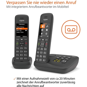 Telefonieren war noch nie so komfortabel! Das Gigaset C575 Duo bringt modernste Technik in dein Zuhause. Mit zwei Handteilen und nur einer Basisstation sparst du dir lästige Kabel und hast trotzdem maximale Flexibilität. Das große 2,2 Zoll TFT-Farbdisplay ist super übersichtlich - selbst mit Jumbo-Modus für diejenigen, die es größer brauchen. Bis zu 200 Kontakte passen ins Telefonbuch, und die Blacklist hält unerwünschte Anrufer fern. Das Beste: Design und Herstellung in Deutschland mit ECO DECT-Technologie für niedrigen Stromverbrauch. Einfach Basisstation anschließen, Handteile laden und los telefonieren! Perfekt für Familien, Homeoffice oder alle, die Wert auf Qualität und Komfort legen.