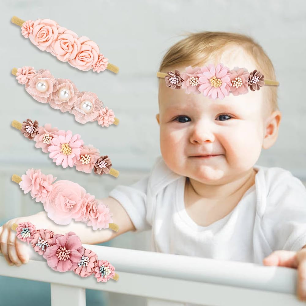 • CATOR Baby Haarband 3er Set - Zarte Blumen-Stirnbänder Für Mädchen 0-3 Jahre