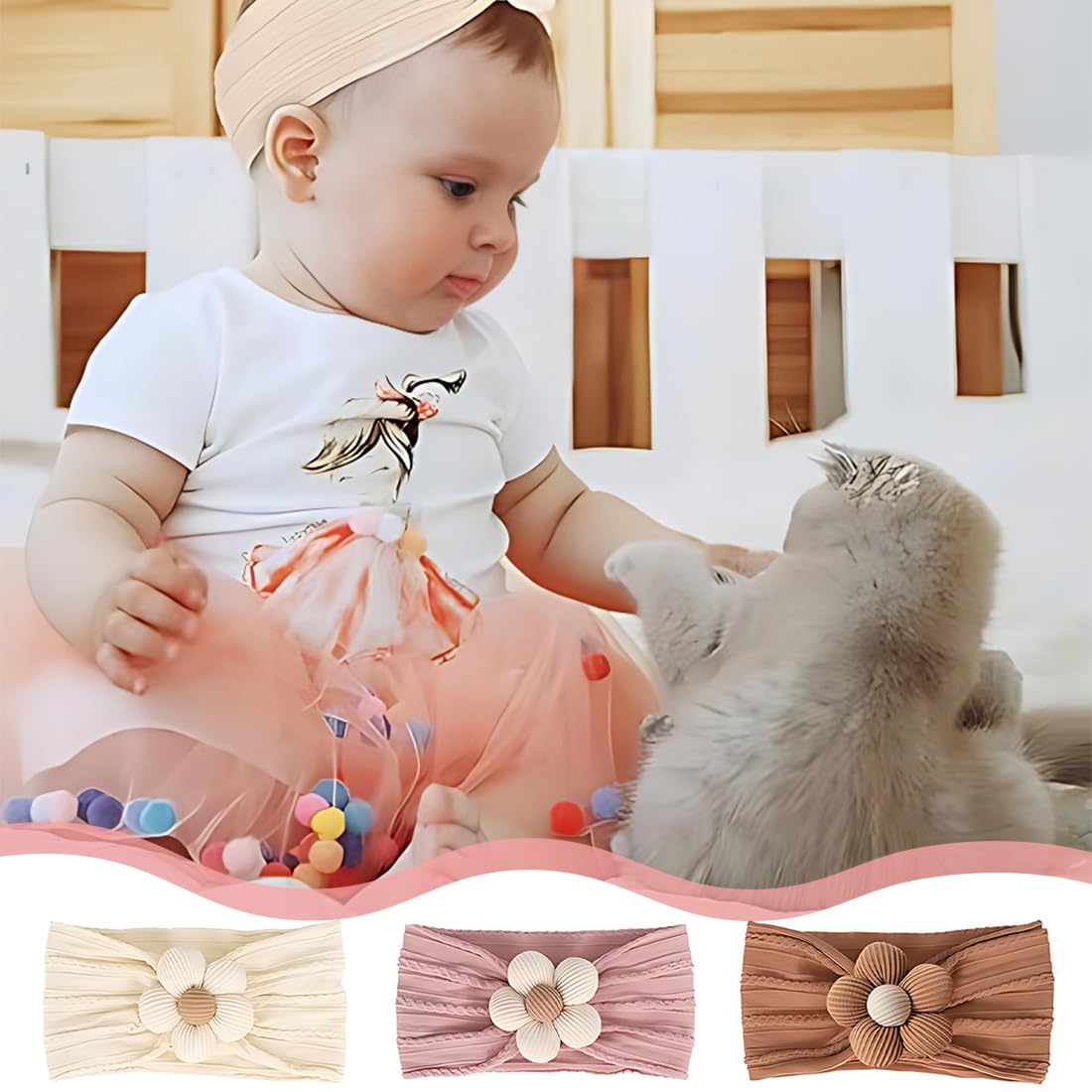 CATOR Baby Haarband 3er Set - Zarte Blumen-Stirnbänder Für Mädchen 0-3 Jahre
