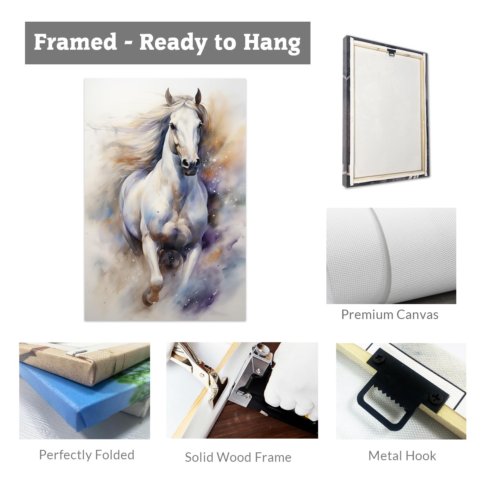 Atemberaubendes Pferde-Bild für deine Wände! Dieser CCWACPP Leinwanddruck zeigt ein wunderschönes weißes Pferd im Aquarell-Stil. Riesige 70x105cm - ein echter Hingucker in jedem Raum. Hochwertiger Druck auf echter Leinwand, gestochen scharf und farbintensiv. Komplett mit Massivholzrahmen und Metallhaken - sofort aufhängbereit. Perfekt für Wohnzimmer, Büro, Flur oder Schlafzimmer. Auch super als Geschenk für Pferdefans zu Geburtstag, Weihnachten oder Jubiläen. Bringt Leben und Eleganz in dein Zuhause. Ein Kunstwerk, das begeistert!