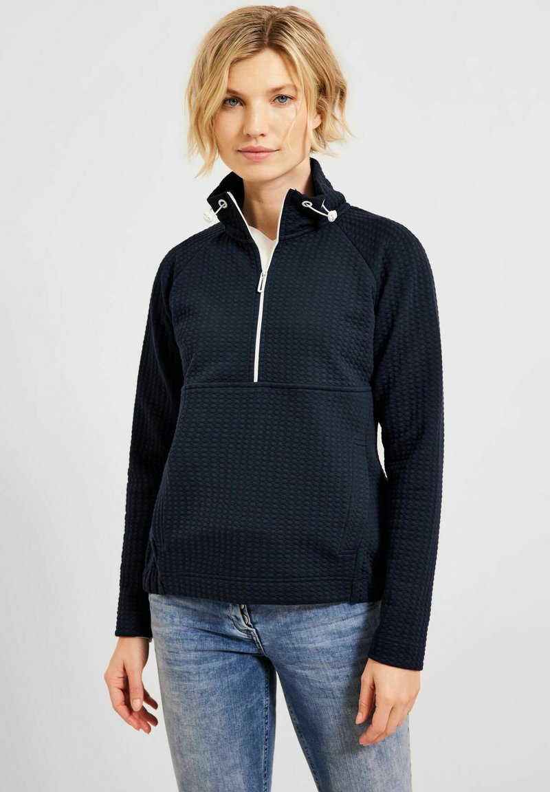 Perfekt für den Alltag! Dieses CECIL Sweatshirt für Damen kombiniert lässigen Style mit super Tragekomfort. Mit praktischem Stehkragen und kurzem Reißverschluss, der je nach Laune geöffnet oder geschlossen werden kann. Die lange Ärmel und die gemütliche Kängurutasche machen es zum idealen Begleiter für kühlere Tage. Aus weicher Sweat-Qualität gefertigt, fühlt es sich angenehm auf der Haut an und sorgt für ein kuscheliges Gefühl. Ob zum Einkaufen, für einen Spaziergang oder einfach nur zum Entspannen zu Hause - dieses Sweatshirt ist vielseitig kombinierbar und passt zu fast allem. Einfach über Jeans, Leggings oder Rock ziehen und du bist perfekt angezogen. Die sportliche Note verleiht dir einen modernen Look, ohne auf Komfort verzichten zu müssen. Ein Must-have für jede Damengarderobe!