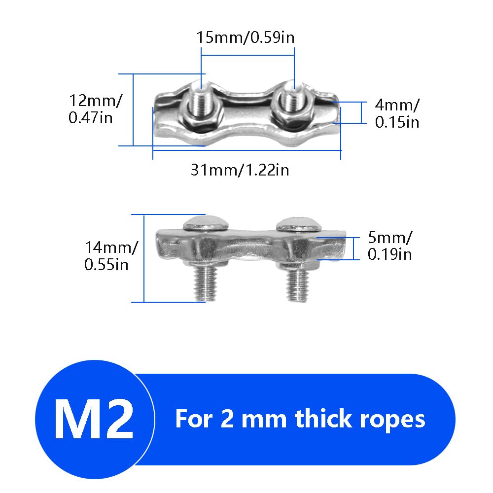 Hey, diese 10 robusten Edelstahl-Seilklemmen sind echt praktisch! Made aus 304er Edelstahl, halten sie auch bei Wind und Wetter stand. Perfekt für deine Wäscheleine im Garten oder zum Sichern von Markisen. Jede Klemme ist 50,5 mm lang und passt genau für 5 mm dicke Seile. Mit den beiliegenden Schrauben machst du alles bombenfest. Ob am Boot, beim Camping oder für die Deckenmontage - damit geht nichts verloren! Achtung: Nicht in Kinderhände geben, die Schrauben sind spitz! Super für Heimwerker, die Wert auf Langlebigkeit legen. Einfach montieren und jahrelang Freude haben. Die silbernen Klemmen sehen dabei noch richtig clean aus!
