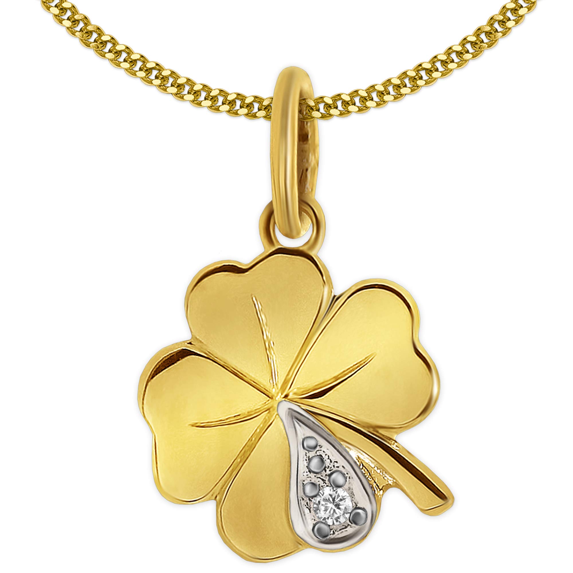 Oh, wie süß! Dieser winzige Kleeblatt-Anhänger von CLEVER SCHMUCK ist einfach perfekt für die Kleinen. Das vierblättrige Kleeblatt steht für Glück und ist teilweise silberfarben rhodiniert (Bicolor) mit einem funkelnden Zirkonia-Stein in der Mitte. Hergestellt aus 333er Gold mit Echtheitsstempel und nur etwa 0,44 g leicht - ideal für Kinderhälse! Im Set enthalten ist eine vergoldete Panzerkette in Kinderlänge (38 cm) mit praktischem Federringverschluss. Das komplette Set kommt im schönen Schmucketui - perfekt zum Verschenken zur Taufe, Kommunion oder einfach so! Ein wunderschönes Stück Kinderschmuck, das nicht nur hübsch aussieht, sondern auch Glück bringt. Dein Kind wird diesen besonderen Anhänger lieben und immer in guter Erinnerung behalten!