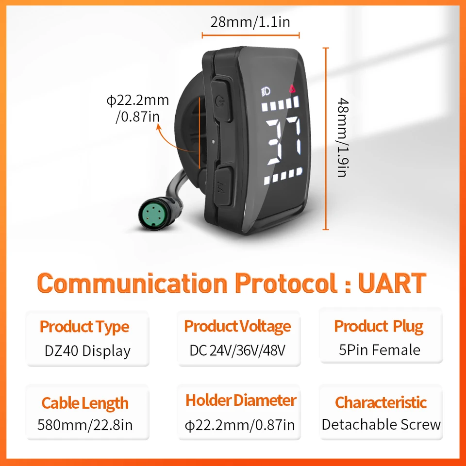 Für alle Bafang E-Bike Besitzer! Dieses DZ40 LCD Display ist der perfekte Upgrade für deinen E-Antrieb. Mit IP65 Schutz ist es komplett wasserdicht - egal ob Regen oder Spritzwasser, kein Problem! Kompatibel mit 24V, 36V und 48V Systemen und passt perfekt zu Bafang BBS01, BBS02 und HD Mittelmotoren. Das schwarze ABS-Gehäuse ist robust und das Display zeigt alle wichtigen Infos super übersichtlich an. Nur 44g leicht und für Temperaturen von -30°C bis 80°C geeignet. Einfach links am Lenker montieren und sofort losfahren - dein E-Bike wird damit noch smarter!