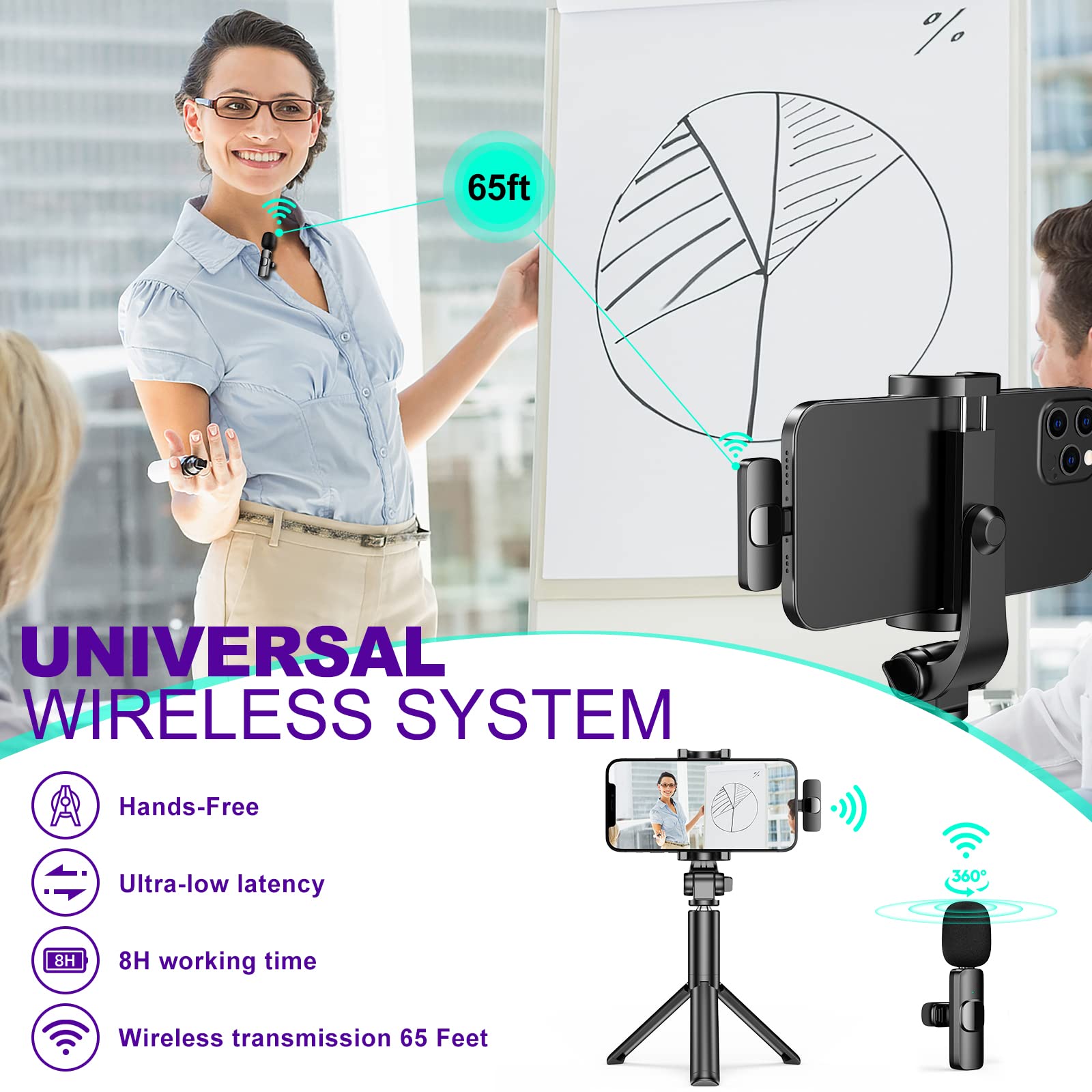 Lädt ca. 2 Stunden und hält dann 4–5 Stunden durch. Der Empfänger hat sogar nen Ladeanschluss, sodass du gleichzeitig dein Handy aufladen kannst. Mini, leicht und unauffällig – perfekt für Vlogs, Interviews, Podcasts oder Online-Unterricht.