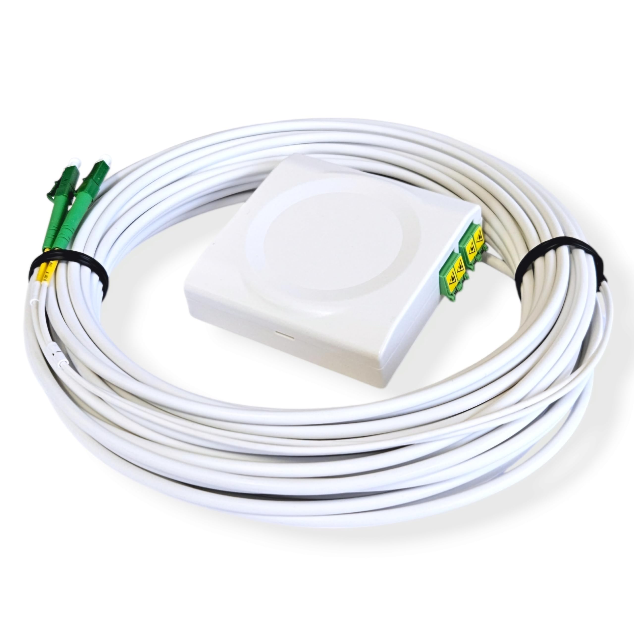 Das CONBIC FTTH Kit ist deine Komplettlösung für den Glasfaser-Anschluss zu Hause! Alles ist schon fertig vormontiert - einfach Stecker rein und du genießt Highspeed-Internet. Das weiße OS2 Patchkabel mit 4mm Durchmesser hat LC/APC-Stecker und ist kompatibel mit Telekom, Vodafone und AVM FRITZ!Box. Mit dem G.657.A2 Kabel und einem minimalen Biegeradius von nur 7,5mm ist es super flexibel und einfach zu verlegen. Das Duplex-Kabel bietet dir sogar ein Reserve-Kabel für zukünftige Erweiterungen. Geliefert wird alles auf einer praktischen Rolle inklusive Durchziehhilfe fürs Leerrohr, Schrauben und Dübeln für die Befestigung. Brandschutzklasse B2ca und halogenfreier Mantel sorgen für Sicherheit. Perfekt für FRITZ!Box 5530, 5590 und Glasfaser-Modems - so holst du dir das Internet mit Lichtgeschwindigkeit nach Hause!