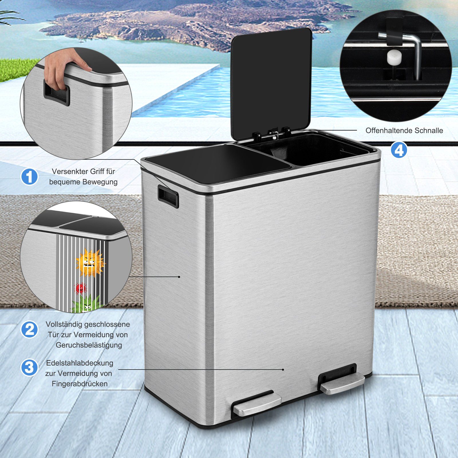 • COSTWAY Mülleimer 235L Doppeldeckel | Outdoor Abfalltonne Mit Auffangschale