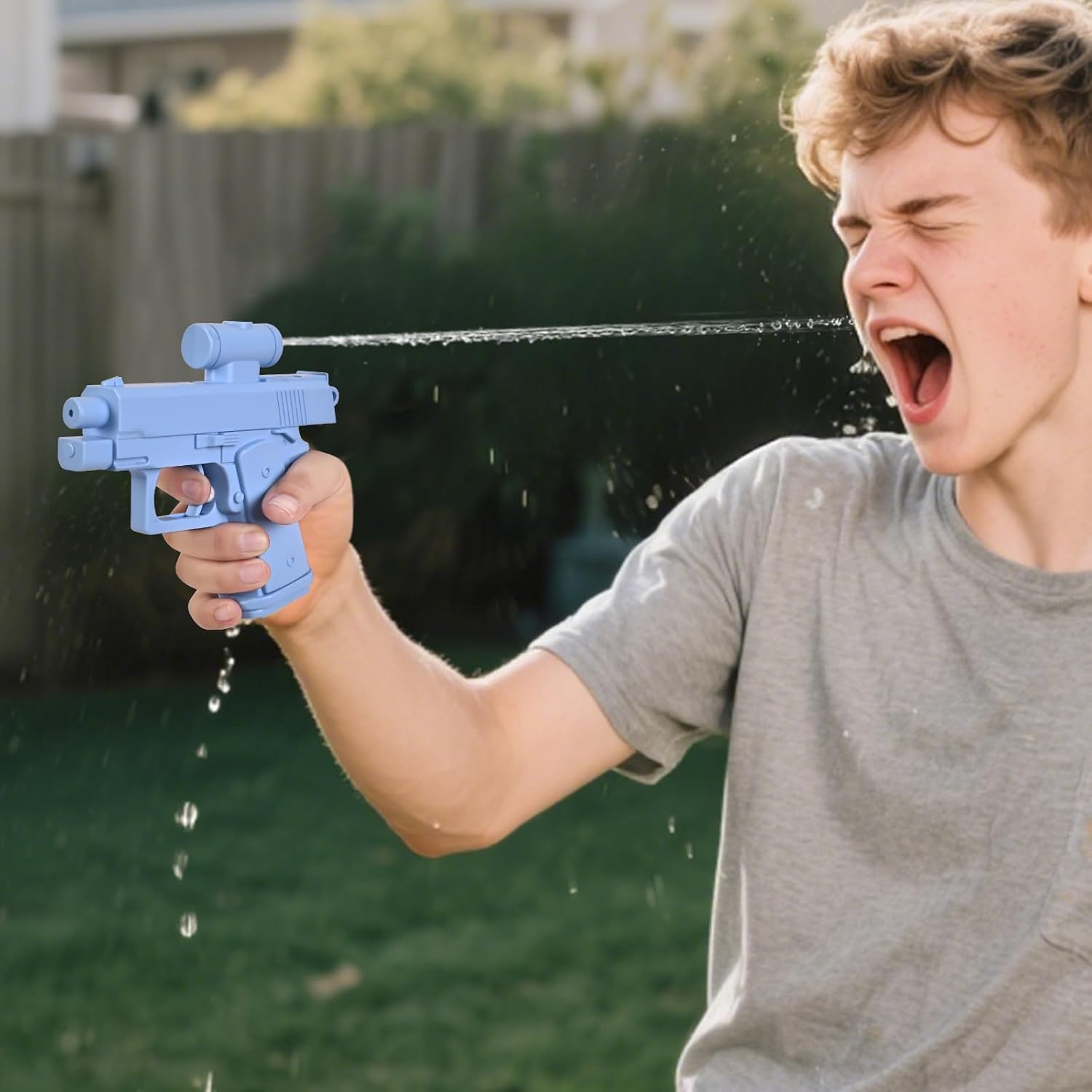 Achtung, Wasserschlacht-Fans! Diese geniale Streich-Wasserpistole von CUVZORA bringt den ultimativen Spaß für den Sommer. Das Besondere: Sie spritzt Wasser sowohl nach vorne als auch nach hinten - perfekt für überraschende Streiche! 💦\n\nMit nur 12x10cm ist sie klein, leicht und passt in jede Tasche. Einfach Wasser einfüllen, Abzug drücken und los geht der Wasserspaß! Aus robustem, ungiftigem Kunststoff ist sie sicher für Kinder und Erwachsene gleichermaßen.\n\nIdeal für den Garten, Strand, Pool oder Partys - überall dort, wo Lachen und gute Laune auf dem Programm stehen. Das ergonomische Design liegt gut in der Hand und die manuelle Druckregulierung sorgt für einen gleichmäßigen Wasserstrahl.\n\nOb als Scherzgeschenk, für Geburtstagsfeiern oder einfach für spontane Wasserschlachten - diese Wasserpistole sorgt garantiert für unvergessliche Momente und jede Menge Lacher!