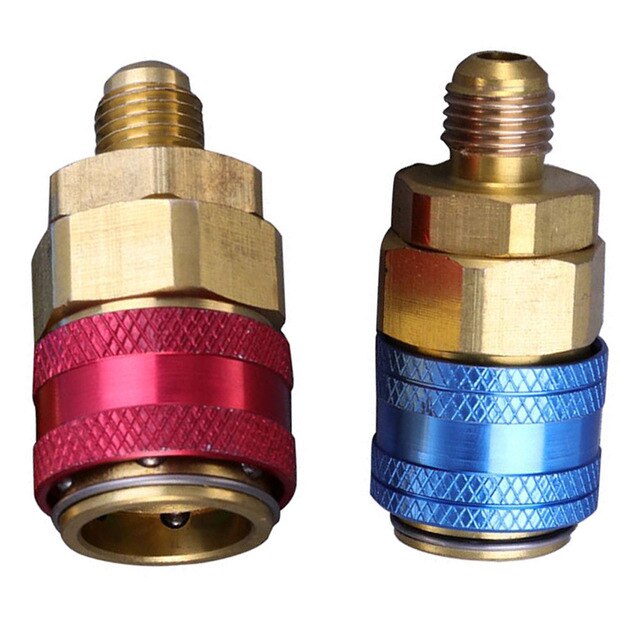 Dieses CYTGOUPER Adapter-Set ist ein Muss für jede Klimaanlagen-Wartung! Im Set: 2 Schnellkupplungen - rot für Hochdruckseite, blau für Niederdruckseite. Beide mit 1/4 Zoll Außengewinde, perfekt kompatibel mit R134a Systemen. Aus Messing und Metall - robust und langlebig. Die Schutzhülsen verhindern Verletzungen und Kältemittelaustritt. Super einfach zu bedienen: Schnell anschließen und trennen, hohe Durchflussrate. Ideal für Diagnose, Befüllung oder Entleerung von Auto-Klimaanlagen. Passt zu den meisten AC-Manifold-Manometer-Sets. Mit ca. 47x30mm Größe handlich und praktisch. Wenn du also selbst an deiner Klimaanlage arbeiten willst oder professionell arbeitest, sind diese Adapter unverzichtbar. Einfach bestellen und dein Klimaservice wird zum Kinderspiel!