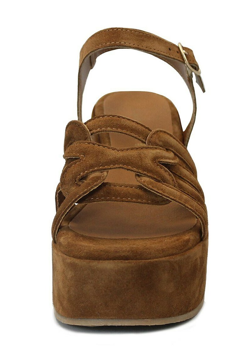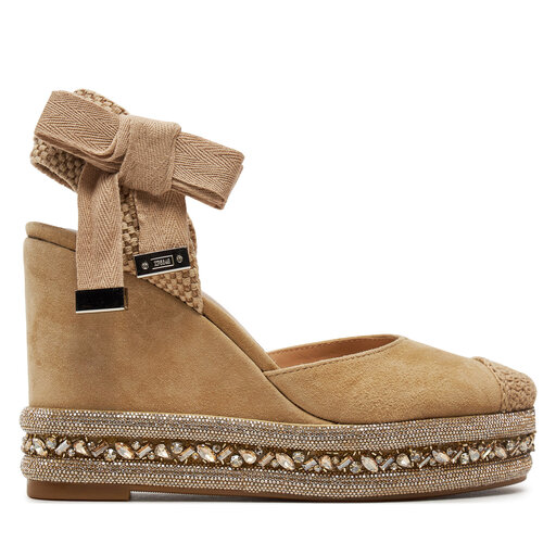 CafèNoir Damen Sandalen Mit Keilabsatz - Ethnische Stoff-Sandalen 8cm Absatz