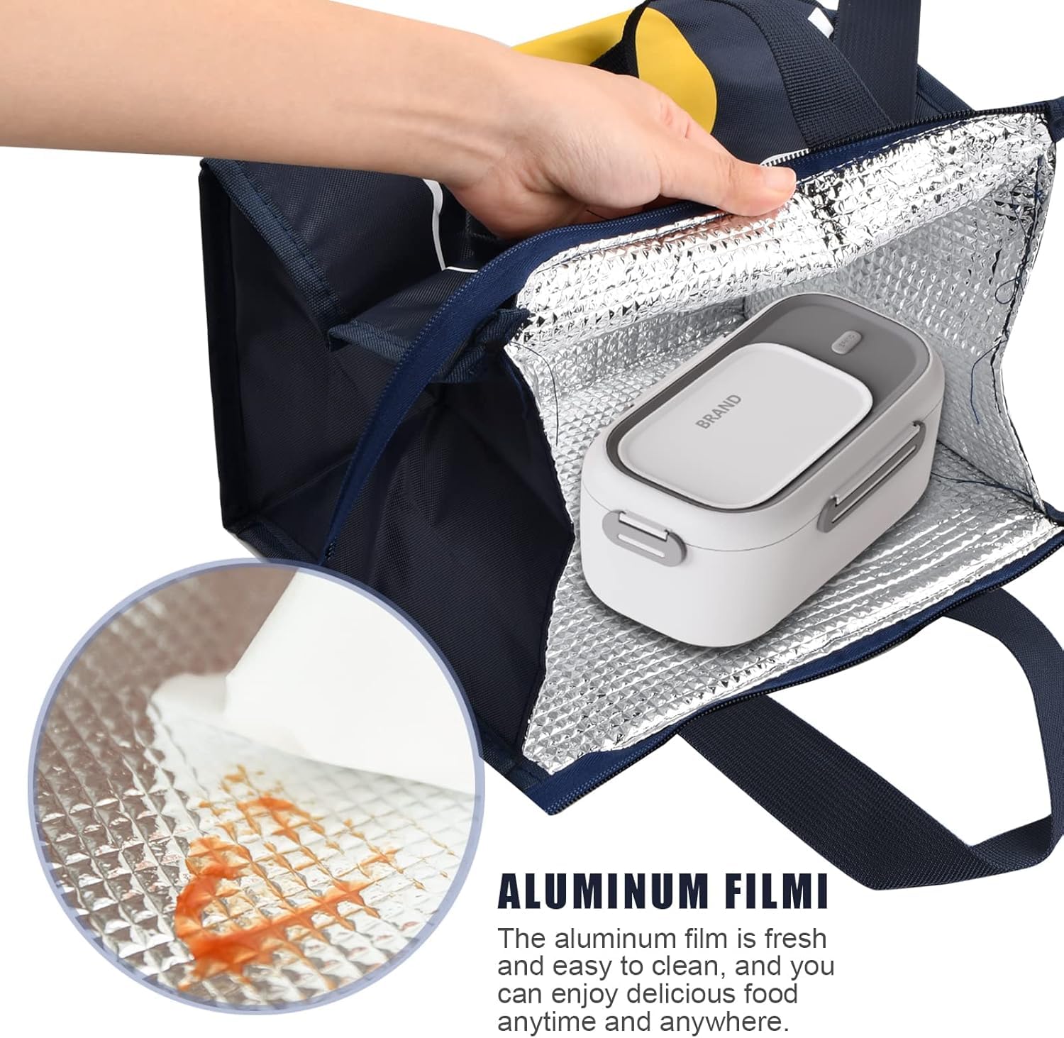 Alles in einer Tasche! Diese geniale 2-in-1 Lunchtasche kombiniert Style und Funktionalität perfekt. Mit isoliertem Fach für Mittagessen - hält Speisen 5 Stunden warm, Getränke 10 Stunden kühl. Oben genug Platz für Laptop bis 15,6 Zoll, Notebook und Zubehör. Das praktische Trennwand-Design schützt das Essen vor Quetschungen. Ohne Essen einfach die Isolierung umklappen für mehr Stauraum. Inklusive passender Brieftasche für Karten und Bargeld. Aus hochwertigem PU-Material, mit verstellbaren Trägern. Perfekt für Arbeit, Uni oder unterwegs. Das ultimative Accessoire für die moderne Frau!