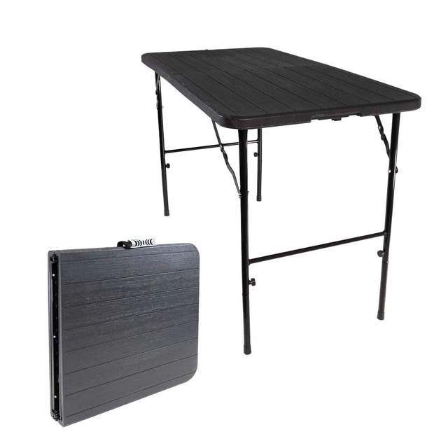 Praktischer Klapptisch für Camping, Garten oder Balkon! Mit den Maßen 80x60cm (aufgeklappt) bietet er genug Platz für Snacks, Getränke oder Spiele. Die Tischplatte aus MDF in Bambusoptik sieht natürlich aus und ist pflegeleicht. Der schwarze Stahlrahmen ist stabil und wackelt nicht. Besonders clever: Die Kippschutz-Vorrichtungen an den Beinen sorgen für zusätzliche Stabilität. Wenn du fertig bist, einfach die Beine einklappen und mit dem integrierten Tragegriff verstauen oder transportieren. Super leicht und platzsparend - ideal für unterwegs. Ob beim Grillen im Garten, beim Camping-Ausflug oder als zusätzlicher Tisch auf dem Balkon - dieser Tisch ist immer dabei. Einfach aufklappen und los geht's!