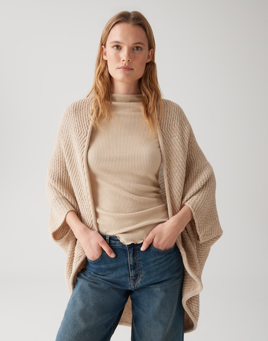 • OPUS Damen Poncho Cape AMARYLLIS - Strickcape Mit Waffelstruktur In Mélange