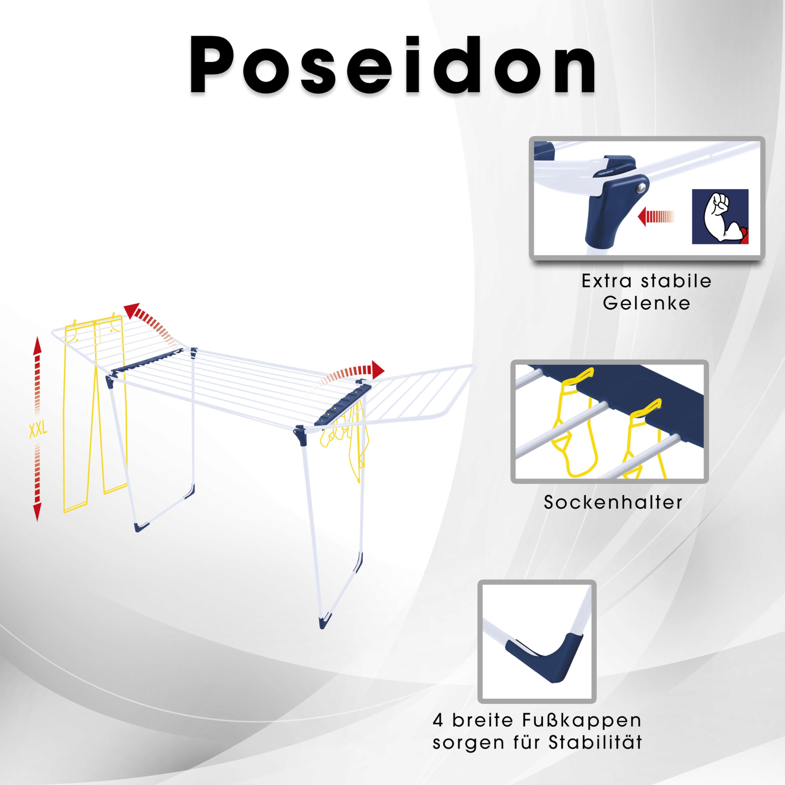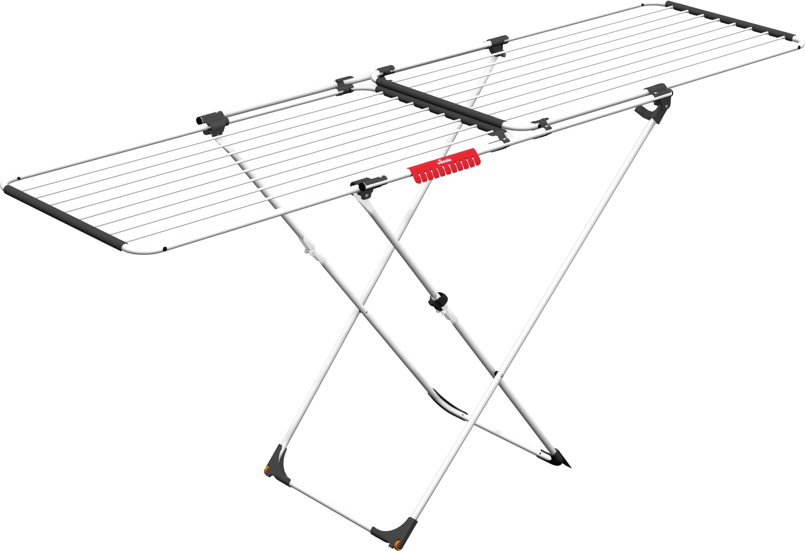 Mit extra dicken Leinen, die deine Wäsche schonend trocknen - keine lästigen Falten mehr, weniger Bügeln, mehr Freizeit! Und das Beste: Hosen und lange Kleider berühren nicht mehr den Boden, dank der extra hohen Konstruktion.