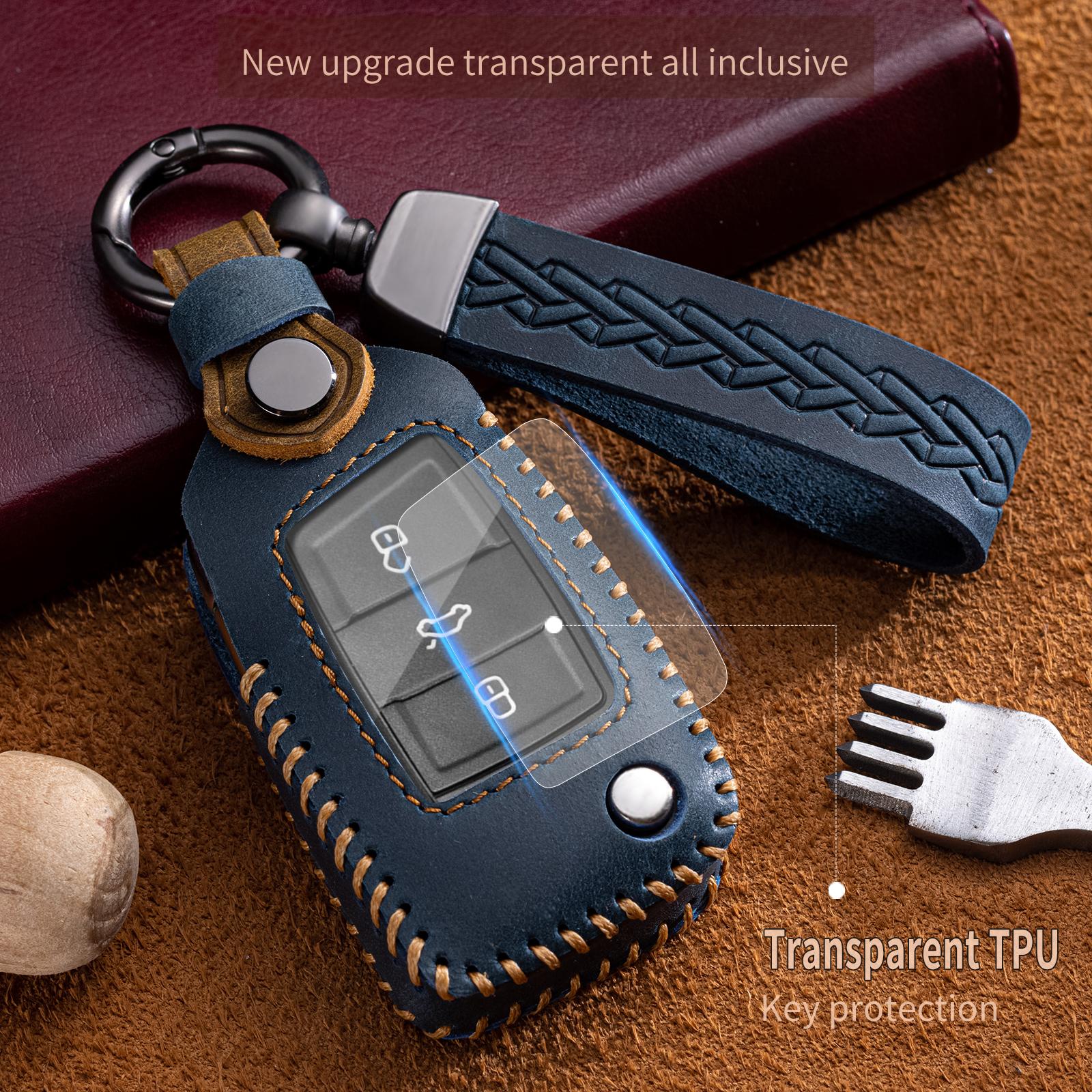 KUNIO Autoschlüssel Hülle - Leder Case Für VW, Skoda & Seat Keyless Go