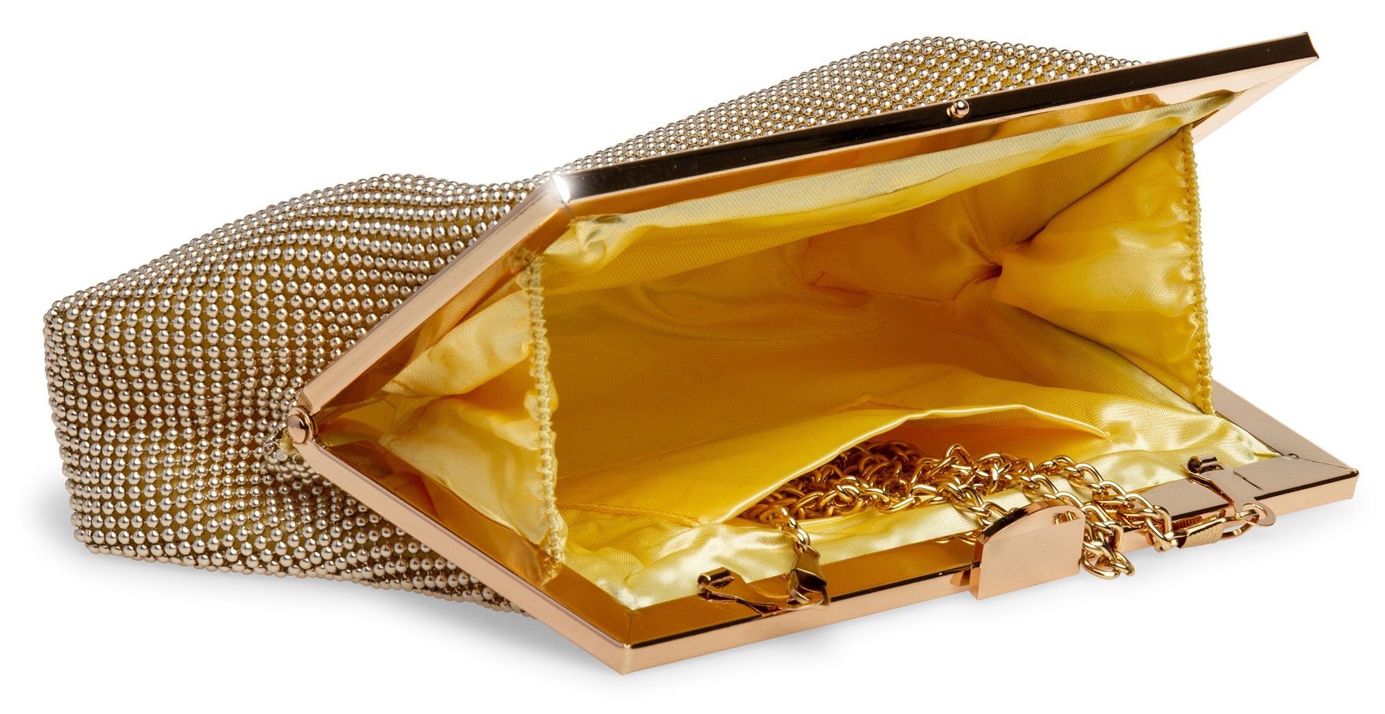Perfekt für besondere Anlässe! Diese elegante Clutch von Caspar ist dein idealer Begleiter für Abendveranstaltungen, Partys oder romantische Dates. Aus hochwertigem Metallic-Kunstleder gefertigt, das je nach Licht toll glänzt oder seidenmatt wirkt. Mit 22 x 5 x 14 cm ist sie genau die richtige Größe – nicht zu klein, nicht zu groß. Drin findest du ein großes Hauptfach plus seitliches Steckfach für Handy, Lippenstift und Co. Der Magnetverschluss hält sicher verschlossen, und die beiliegende Metallkette macht sie im Handumdrehen zur praktischen Umhängetasche. Erhältlich in zarten Pastell- und Metallicfarben – da ist für jeden Geschmack was dabei! Ob Hochzeit, Galaball oder Theaterbesuch – mit dieser Tasche bist du immer perfekt gestylt und hast alles Wichtige griffbereit.