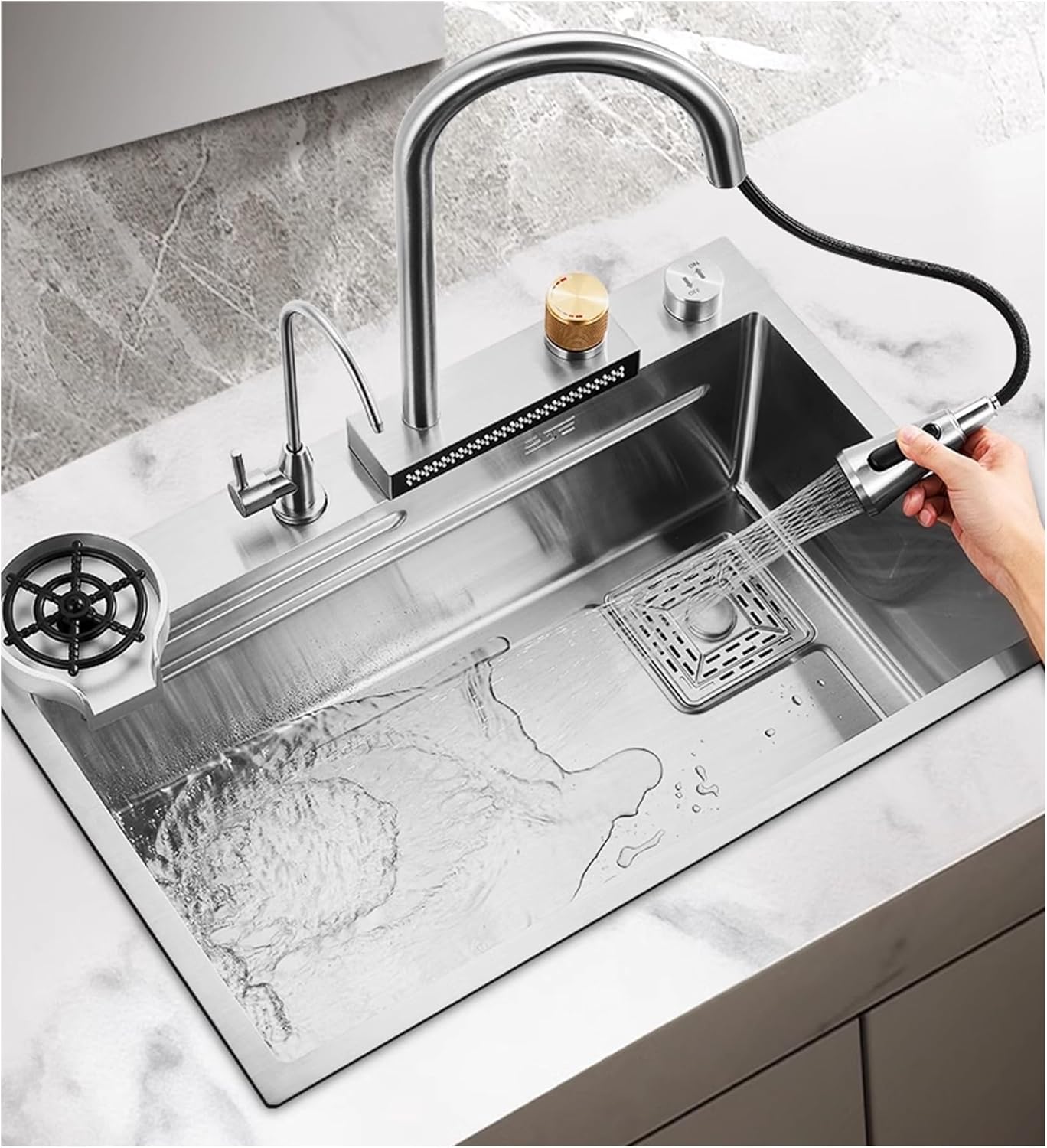 Perfekt für Veranstaltungen, Catering oder die mobile Küche! Diese robuste Edelstahl-Spüle ist ein echter Alleskönner. Aus verdicktem Edelstahl gefertigt, der auch im rauen Küchenalltag bestehen kann. \\n\\nMit praktischem Regal und großzügigem Abfluss - ideal für große Töpfe und Pfannen. Die verstellbaren Füße sorgen für stabilen Stand auf jedem Untergrund. Die gebogenen Ecken machen die Reinigung super einfach, ohne lästige Toträume. \\n\\nWasserdicht und korrosionsbeständig - hält auch bei intensivem Gebrauch lange. Die geneigte Oberfläche leitet Wasser zuverlässig ab. Perfekt für Restaurants, Foodtrucks, Gartenfeste oder Baustellen. \\n\\nEinfach aufzustellen und sofort einsatzbereit. Ein professionelles Arbeitsgerät, das in keiner mobilen Küche fehlen sollte!