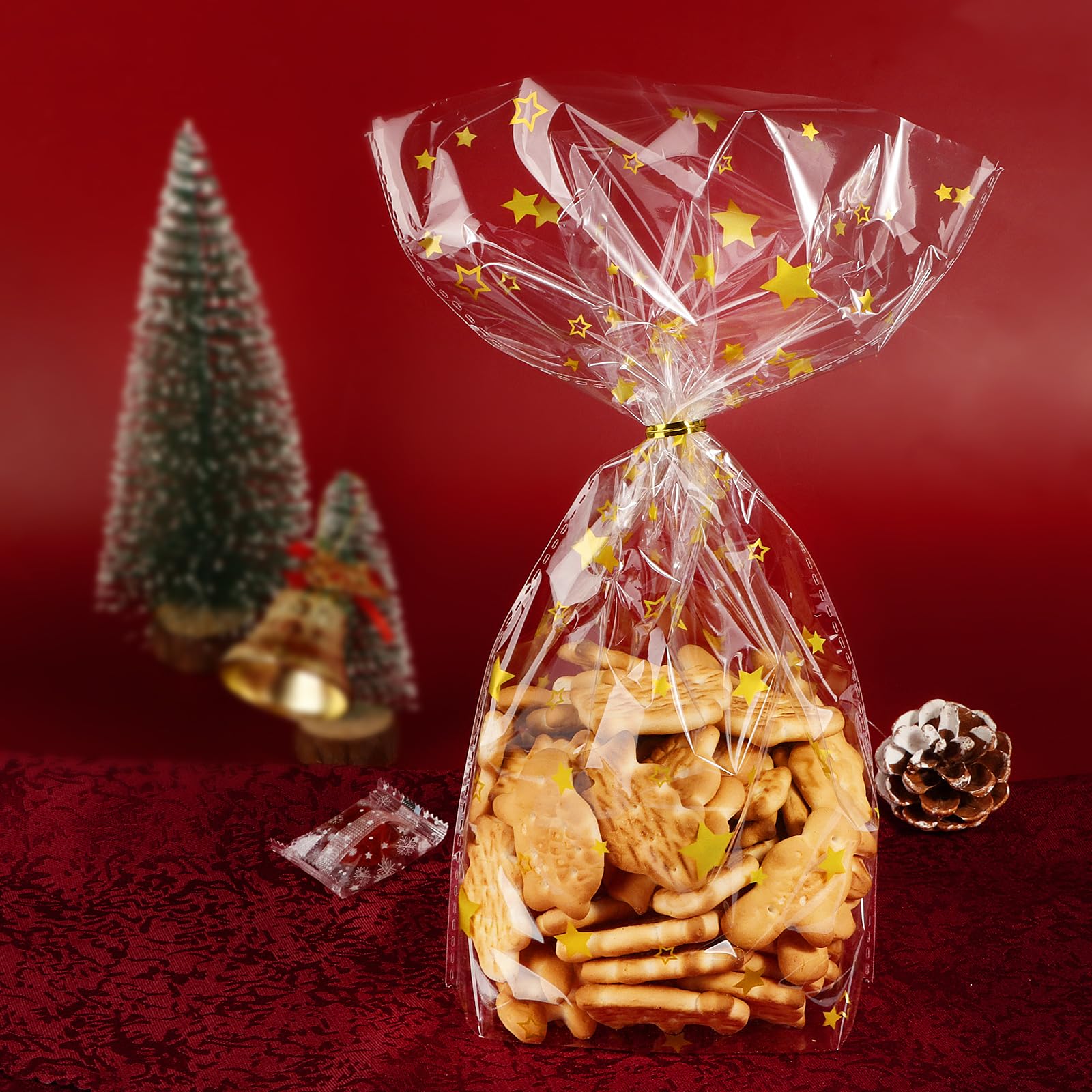 Perfekt für die Weihnachtszeit! Dieses YSUVIN Set enthält 100 wunderschöne Cellophantüten - 50 mit Schneeflocken-Muster und 50 mit goldenen Sternen. Mit 27,5x12,5 cm Größe ideal für Plätzchen, Pralinen, Süßigkeiten oder kleine Geschenke. Aus lebensmittelechtem OPP-Kunststoff, absolut ungiftig und geruchlos. Die praktischen Twist-Krawatten (9cm) sorgen für sicheren Verschluss. Super einfach zu benutzen: Einfach die Leckereien rein, zudrehen und fertig! Perfekt für Weihnachtsfeiern, Adventskalender oder als Tischdekoration. Mach deine Weihnachtsgeschenke noch schöner und persönlicher! Die transparenten Tüten lassen die Köstlichkeiten durchscheinen und die goldenen Motive verbreiten festliche Stimmung. Ein Must-Have für die Vorweihnachtszeit!