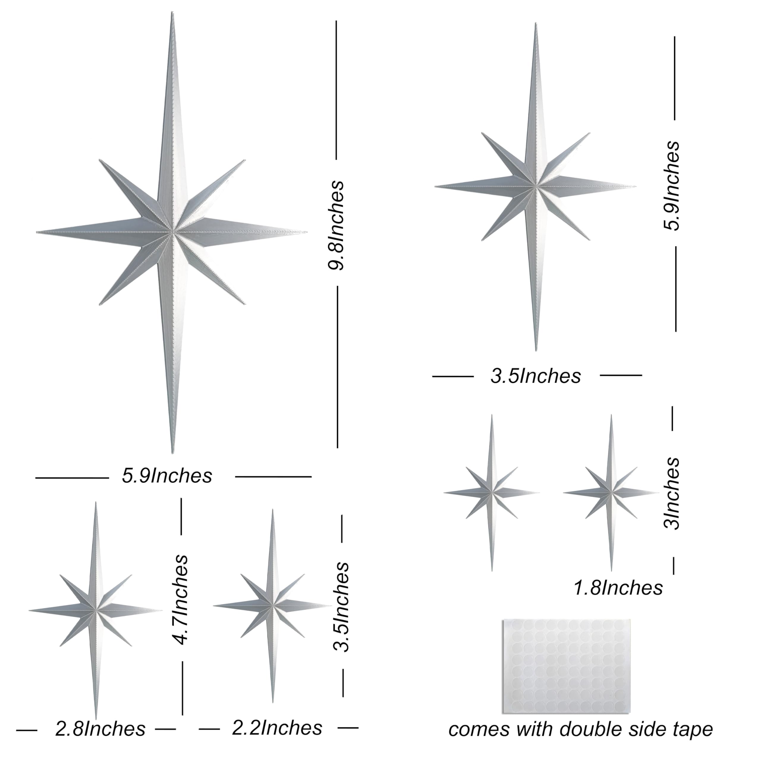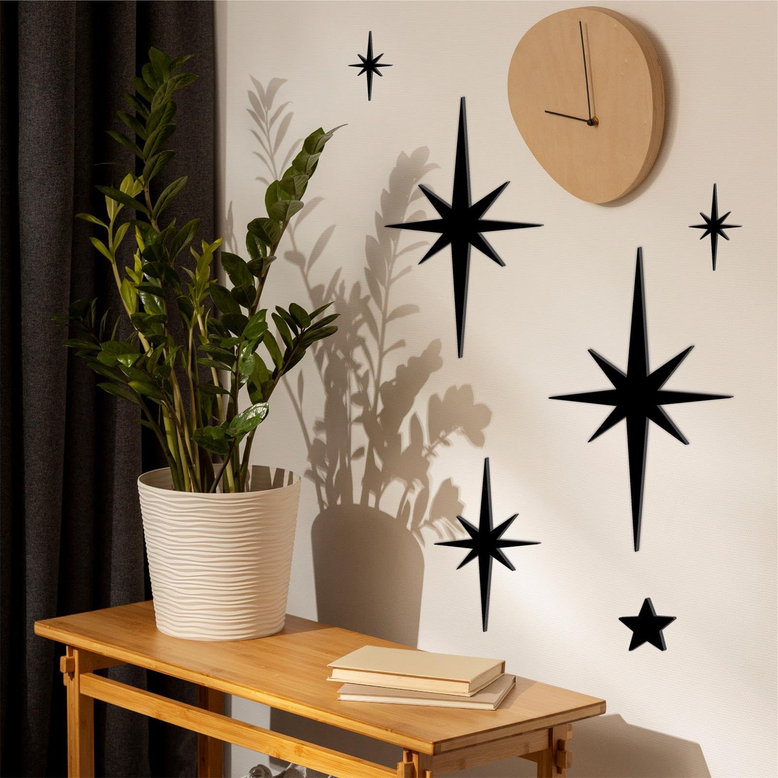 Bring Retro-Charme in deine vier Wände! Diese stylische 3D-Stern-Wandskulptur im Mid-Century Design ist ein echter Hingucker. Das 5-teilige Set in verschiedenen Größen von 6,3cm bis 21,6cm lässt sich kreativ anordnen.