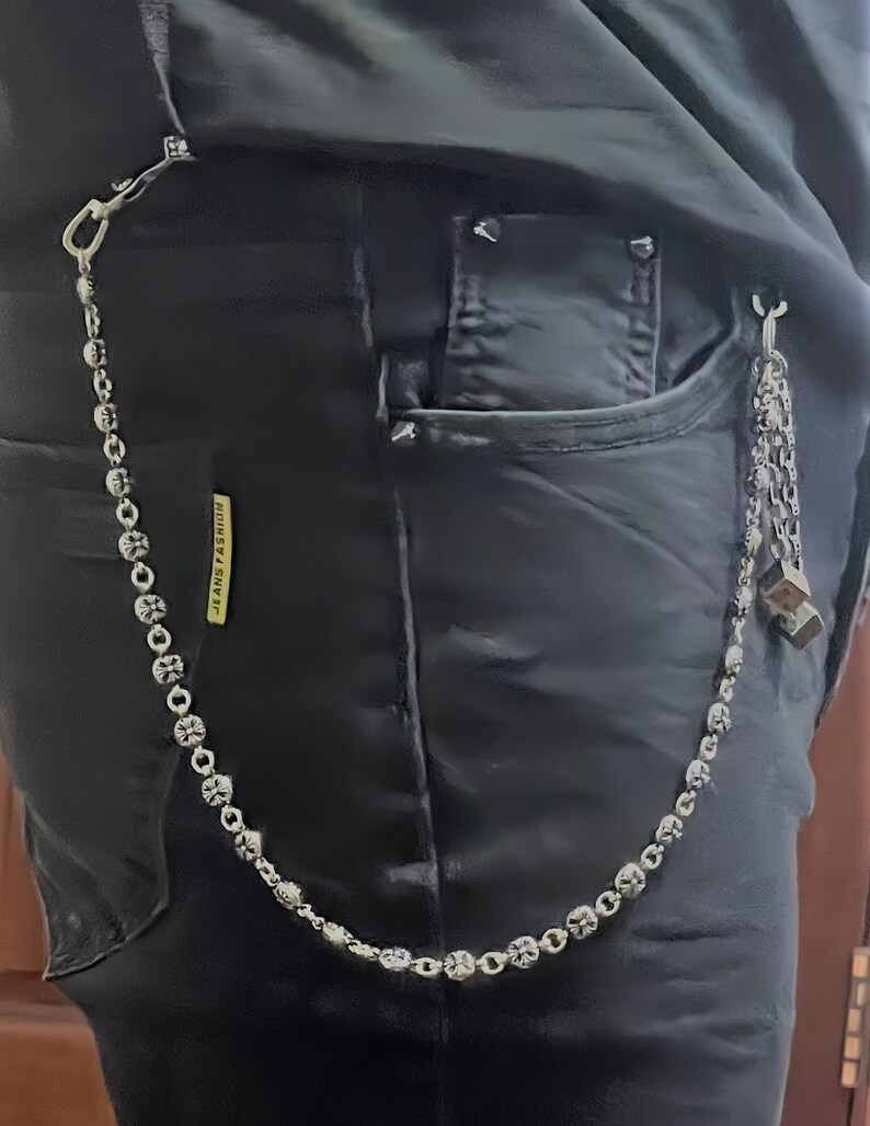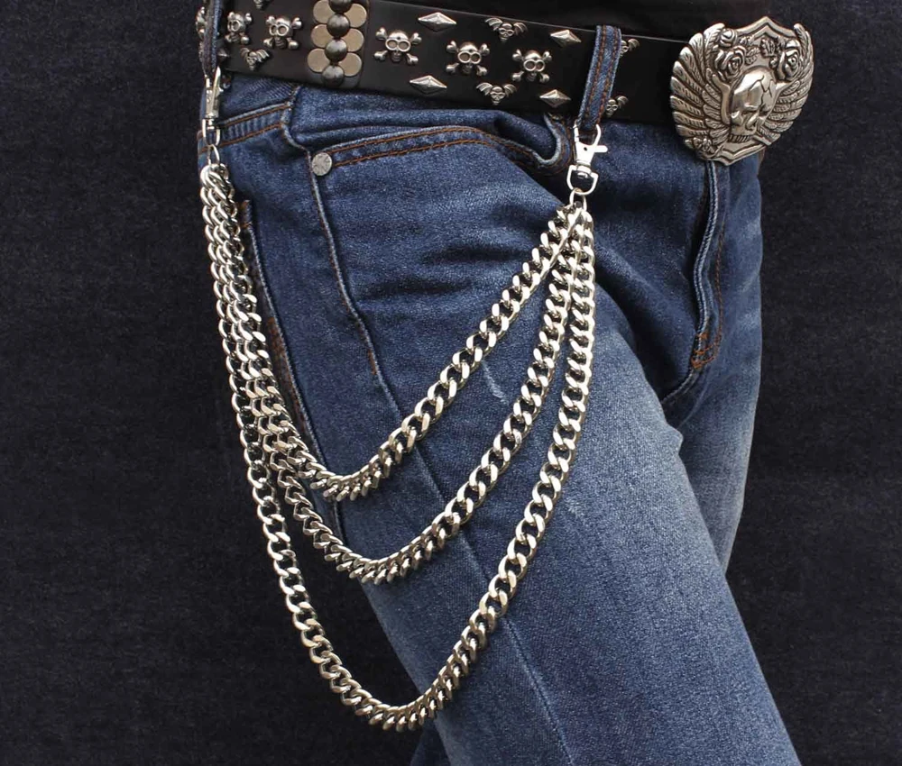 Die robusten Karabinerhaken halten bombenfest, egal ob du auf Konzerten abgehst, feiern gehst oder einfach nur im Alltag stylisch unterwegs bist. Und das Beste: Die Kette ist nicht nur Deko, sondern auch mega praktisch als Wallet Chain für deine Brieftasche oder als Schlüsselanhänger.