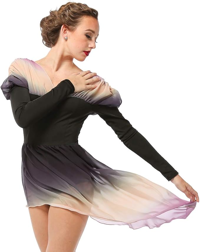 Wow, dieses Tanzkleid ist einfach traumhaft schön! Stell dir vor: Ein Kleid, das auf einer Seite ärmellos ist und auf der anderen lange Ärmel hat - total ungewöhnlich und stylisch. Dazu kommt dieser wunderschöne Ausschnitt und Patchwork-Design. Hinten ist ein unsichtbarer Reißverschluss, also easy an- und auszuziehen. Der elastische Bund sitzt perfekt und betont deine Taille. Und das Beste: Eingebaute Shorts geben dir Sicherheit, während der durchsichtige Mesh-Rock mit Seitenschlitzen superelegant im Tanz fließt. Aus 60% Mesh und 40% Polyester - weich, atmungsaktiv und angenehm auf der Haut. Perfekt für lyrischen Tanz, Modern Dance, Eiskunstlauf oder Bühnenauftritte. Sieht einfach professionell aus! Es gibt verschiedene Größen von S bis XXL - am besten misst du vorher genau nach. Macht sich übrigens auch super bei Wettbewerben oder im Tanzunterricht. Einfach ein Kleid, in dem man sich sofort wie eine Tänzerin fühlt - elegant, feminin und voller Ausdruckskraft!
