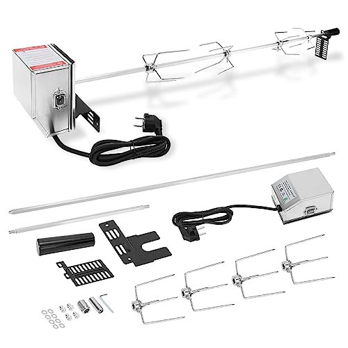 Restaurant-Qualität direkt vom eigenen Grill! Dieser universelle Drehspieß von Charbroil verwandelt deinen Grill in eine professionelle Rotisserie-Station. Passt auf die meisten Grills mit 2 bis 6 Brennern und bietet optimale Nutzung des Grillraums. Das Komplett-Set enthält eine einteilige Spießstange, einen langlebigen A/C-Elektromotor, zwei 4-zackige Fleischgabeln und Montagehalterungen. Der Motor sorgt für konstante 2 Umdrehungen pro Minute - perfekt für saftiges Fleisch, knuspriges Geflügel oder aromatischen Fisch. Die Fleischgabeln halten Braten, Schinken und ganze Hähnchen sicher an Ort und Stelle. Einfache Montage: Ein Halter wird an der Deckelstütze befestigt, der andere an den Grillrosten. So gelingt dir jedes Grillgericht perfekt und besonders saftig. Hol dir diesen Qualitäts-Drehspieß und werde zum Grillmeister deiner Nachbarschaft!