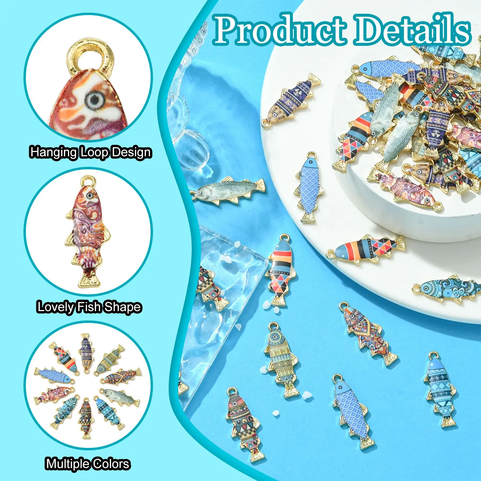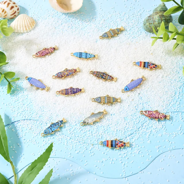 • 15 Stück Fisch Charms Anhänger - Emaille Legierung Schmuck Basteln Meerestier