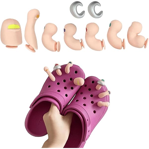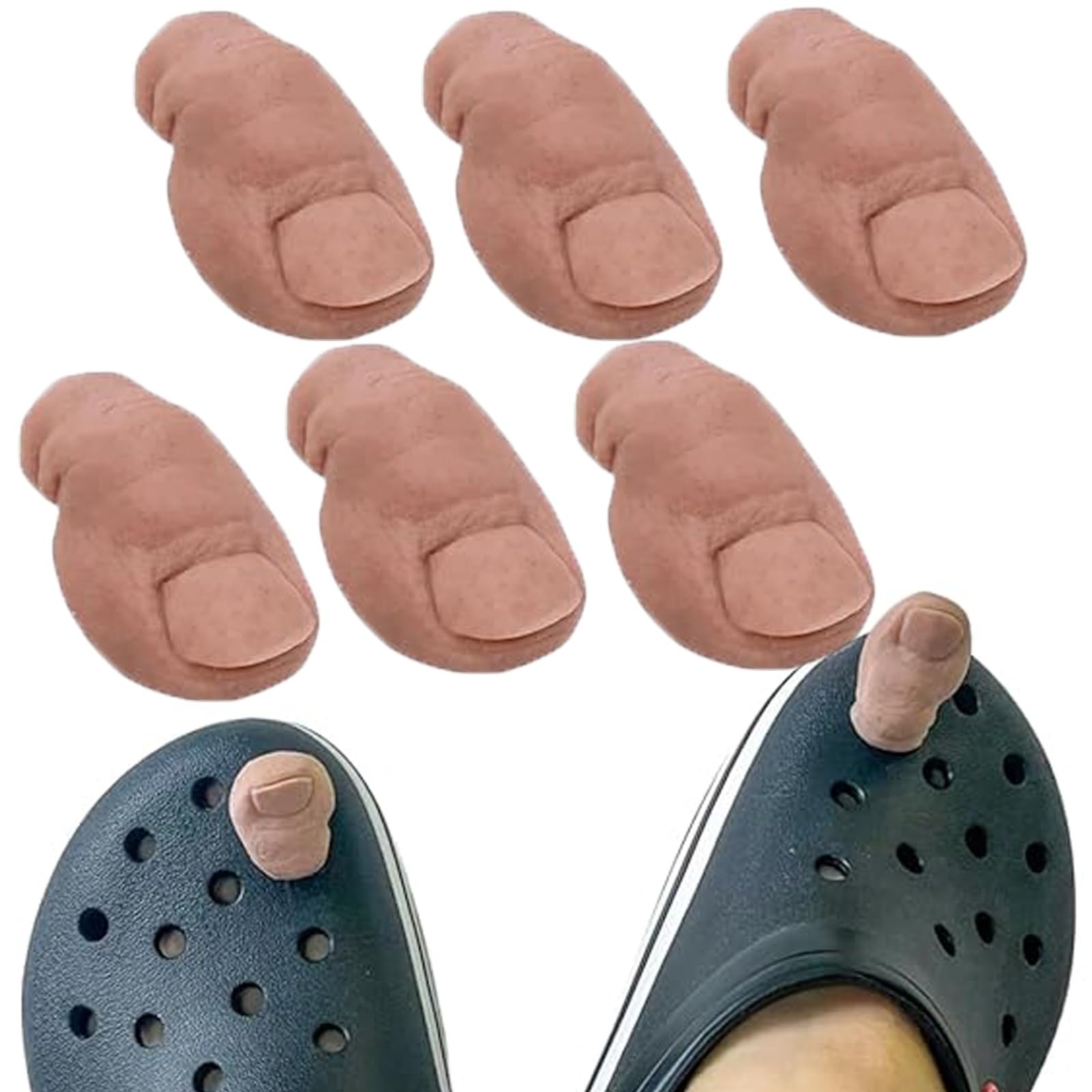 Diese urkomischen 3D-Krokodil-Zehen-Charms sorgen garantiert für Lacher und erstaunte Blicke! Die täuschend echten Zehen-Anhänger aus PVC sehen aus wie echte menschliche Zehen, die aus deinen Schuhen herausschauen - komplett mit Hautton, Textur und sogar Härchen! Einfach an die Belüftungslöcher deiner Crocs oder anderer kompatibler Schuhe stecken und sofort verwandeln sich deine Schuhe in einen echten Hingucker. Die Charms sind überraschend robust und langlebig, egal ob du tanzt, läufst oder spielst - sie bleiben sicher an Ort und Stelle. Perfekt für Partys, als Geschenk oder einfach um deinen eigenen individuellen Style zu zeigen! Deine Freunde werden doppelt hinschauen und fragen, was da aus deinen Schuhen guckt... Ein absolutes Must-Have für alle, die Humor und Individualität lieben!