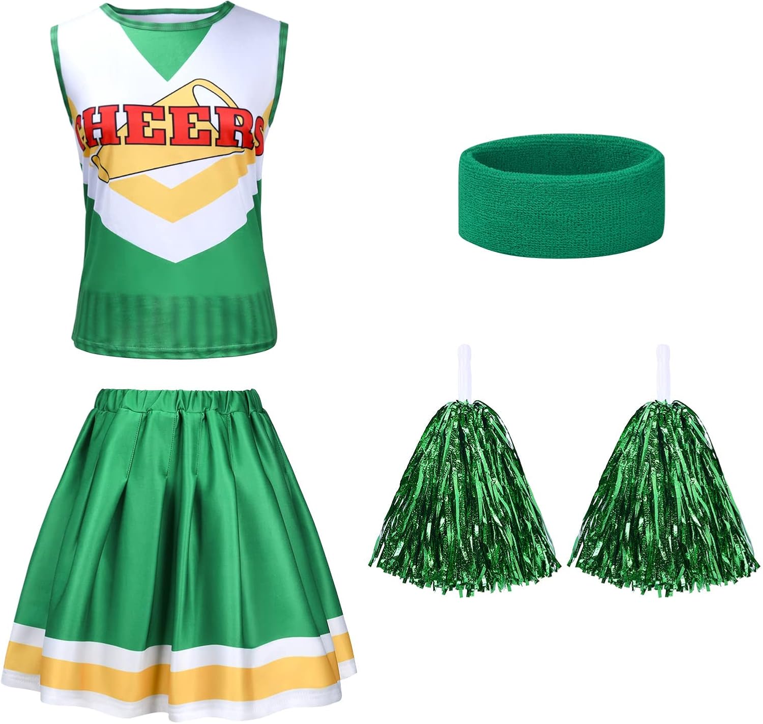 Jetzt wird's cheerig! Dieses komplette Cheerleader-Kostüm macht jede Party zum Hit! Im Set enthalten: Kleid, Haarband, Handblumen (Pompons) und Strümpfe - alles was du brauchst! Aus 75% Polyester und 20% Elasthan - super dehnbar und bequem zu tragen! Mit coolem Mesh-Ausschnitt an den Schultern und langen Ärmeln - sieht total authentisch aus! Vorne glänzender Buchstabendruck und hinten dezent offen - richtig stylisch! Die Pompons haben praktische Fingerringe - damit kannst du sie super festhalten! Das Haarband mit Schleife ist elastisch - passt zu jedem Kopf und jeder Frisur! Verfügbar in Größen S bis XXL - für jede die passende Größe! Perfekt für Halloween, Karneval, Mottopartys oder Tanzauftritte! Macht dich sofort jugendlich und energiegeladen - da kommt richtig Stimmung auf! Auch super für Basketball-Spiele, Team-Events oder einfach mal zum Spaß! Einfach anziehen und die Cheerleaderin in dir rauslassen - garantiert ein Hingucker! Damit wirst du auf jeder Party zum Star - lustig, frech und total in Character!