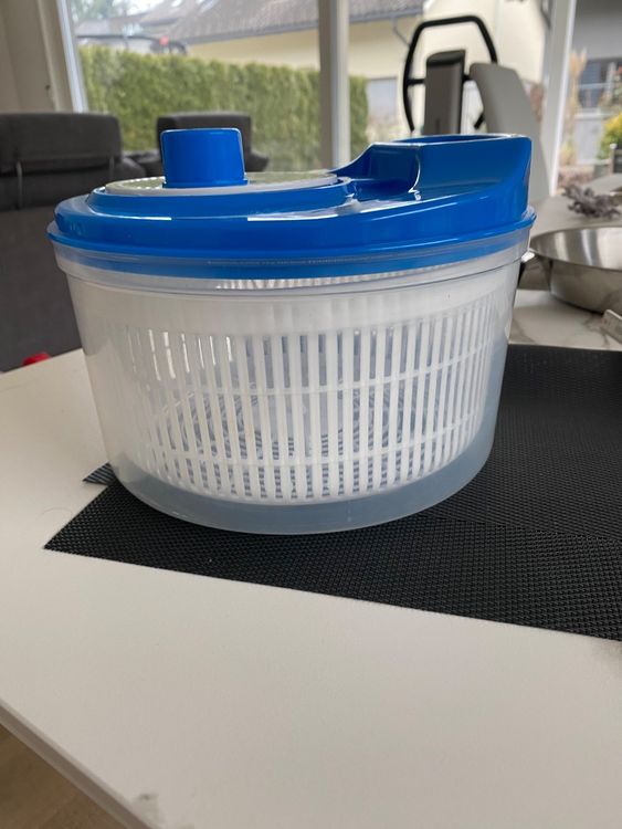 Perfekter Salat in Sekunden! Diese praktische Salatschleuder von Chef Aid macht aus nassem Salat im Handumdrehen knackige Blätter. Mit 4,4 Litern Fassungsvermögen passt eine ganze Salatportion rein. Einfach die Kurbel drehen und schon schleudert der transparente Kunststoffkorb das Wasser raus. Der Deckel hält mit zwei Clips sicher verschlossen. Super praktisch: Der Korb kann auch separat als Sieb verwendet werden. Maße: 24,5cm Durchmesser, 16cm Höhe. Leicht zu reinigen und platzsparend zu verstauen. Ob für den täglichen Gebrauch oder die Partyvorbereitung - mit dieser Schleuder wird jeder Salat zum Knusper-Erlebnis!