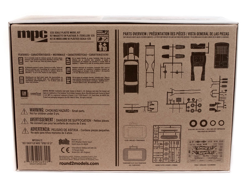 Hey Modellbau-Fans! Dieser 1957er Chevy Flip Nose Bausatz von Round2 ist echt was Besonderes. Im Maßstab 1:25 wird das ein richtig detailliertes Sammlerstück.