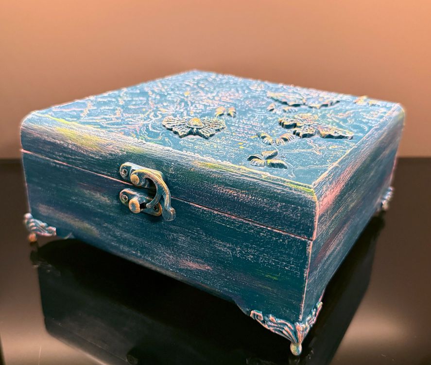 Wie schön ist denn dieses Schmuckkästchen? Aus massivem Nussbaumholz handgefertigt - jedes Stück ein Unikat! Mit den Maßen 15x10x10cm (LxBxH) perfekt für Ringe, Ketten, Ohrringe und andere kleine Schätze. Die eingeschnitzte Ranke mit Blüten auf dem Deckel sieht einfach elegant aus. Nicht nur praktisch, sondern auch ein wunderschönes Deko-Stück für Wohnzimmer, Schlafzimmer oder Badezimmer. Die natürliche Holzoptik passt zu jedem Einrichtungsstil. Da es handgefertigt ist, kann es kleine Abweichungen geben - das macht jedes Kästchen einzigartig. Ein tolles Geschenk für alle, die schöne Dinge lieben!