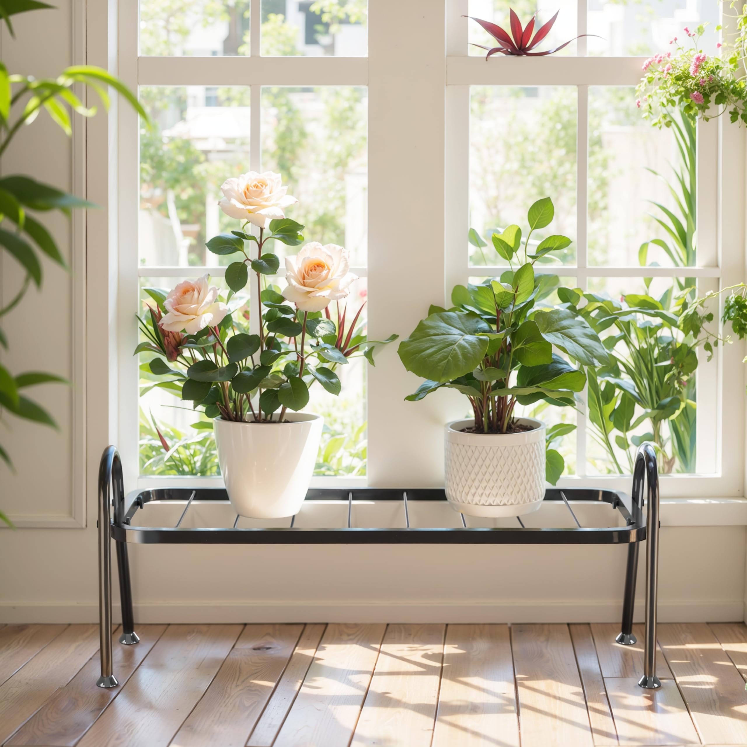 Gib deinen Pflanzen den Auftritt den sie verdienen! Dieser elegante Pflanzenständer in Schwarz hebt deine grünen Lieblinge auf Augenhöhe und schützt gleichzeitig deine Böden vor Flecken. Aus robustem geschmiedetem Stahl mit Schutzschicht gegen Rost - hält auch draußen problemlos stand. Mit filigranem Blumenmuster-Design das jedem Raum Stil verleiht. Maße: 20x20x15cm - kompakt aber stabil. Bis zu 27kg Tragkraft - da kannst du auch mehrere schwere Töpfe draufstellen. Durch die erhöhte Positionierung bekommen deine Pflanzen bessere Belüftung und bleiben länger gesund. Einfach zusammenschrauben - in Minuten fertig aufgebaut. Für drinnen und draußen geeignet - der perfekte Begleiter für deine Pflanzen!