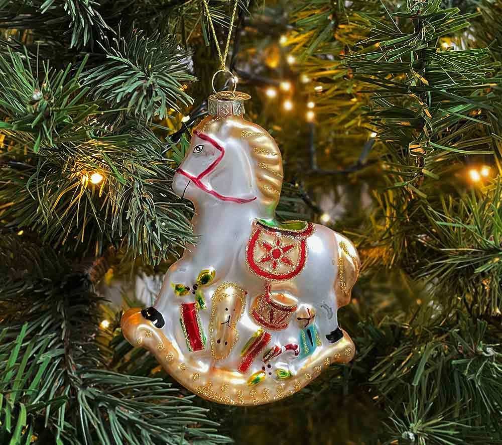 Inge-glas Christbaumschmuck Schaukelpferd - Handbemalte Weihnachtskugel 11cm