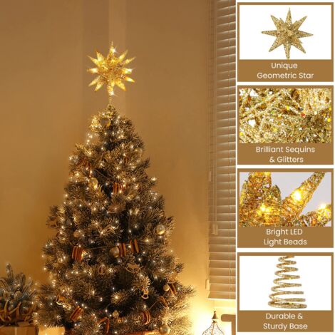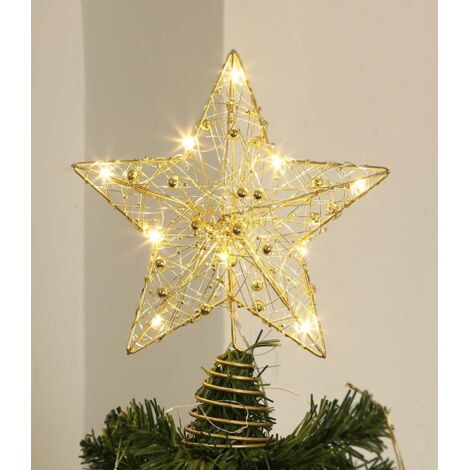 Christbaumspitze Stern Gold - LED Weihnachtsbaum Spitze Batteriebetrieben