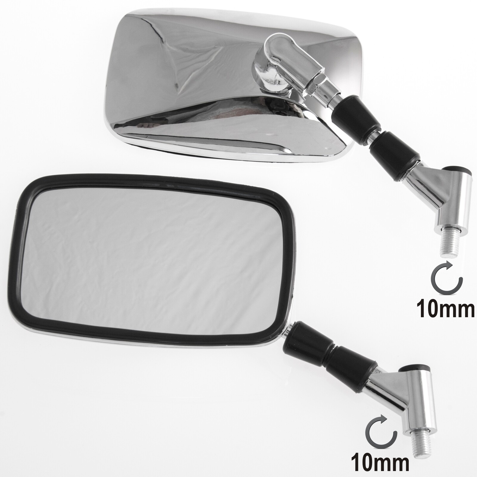Suchst du neue Spiegel für deine Maschine? Diese rechteckigen Chrom-Spiegel sehen einfach klasse aus! Im Set bekommst du beide Spiegel - links und rechts - mit Metall-Armen für stabilen Halt. Die chromierte Oberfläche glänzt super und gibt deinem Bike diesen coolen Custom-Look. Mit den mitgelieferten Adapterschrauben (2x 8mm Rechts, 2x 10mm Rechts, 1x 10mm Links) passt das Set an die meisten Motorräder. Einfach montieren und schon hast du bessere Sicht und ein stylisches Upgrade für deine Maschine. Die rechteckige Form ist nicht nur praktisch, sondern sieht auch viel edler aus als runde Spiegel. Perfekt für alle, die ihrem Bike eine persönliche Note verleihen wollen. Einfach bestellen, montieren und losfahren - damit machst du auf der Straße definitiv was her!