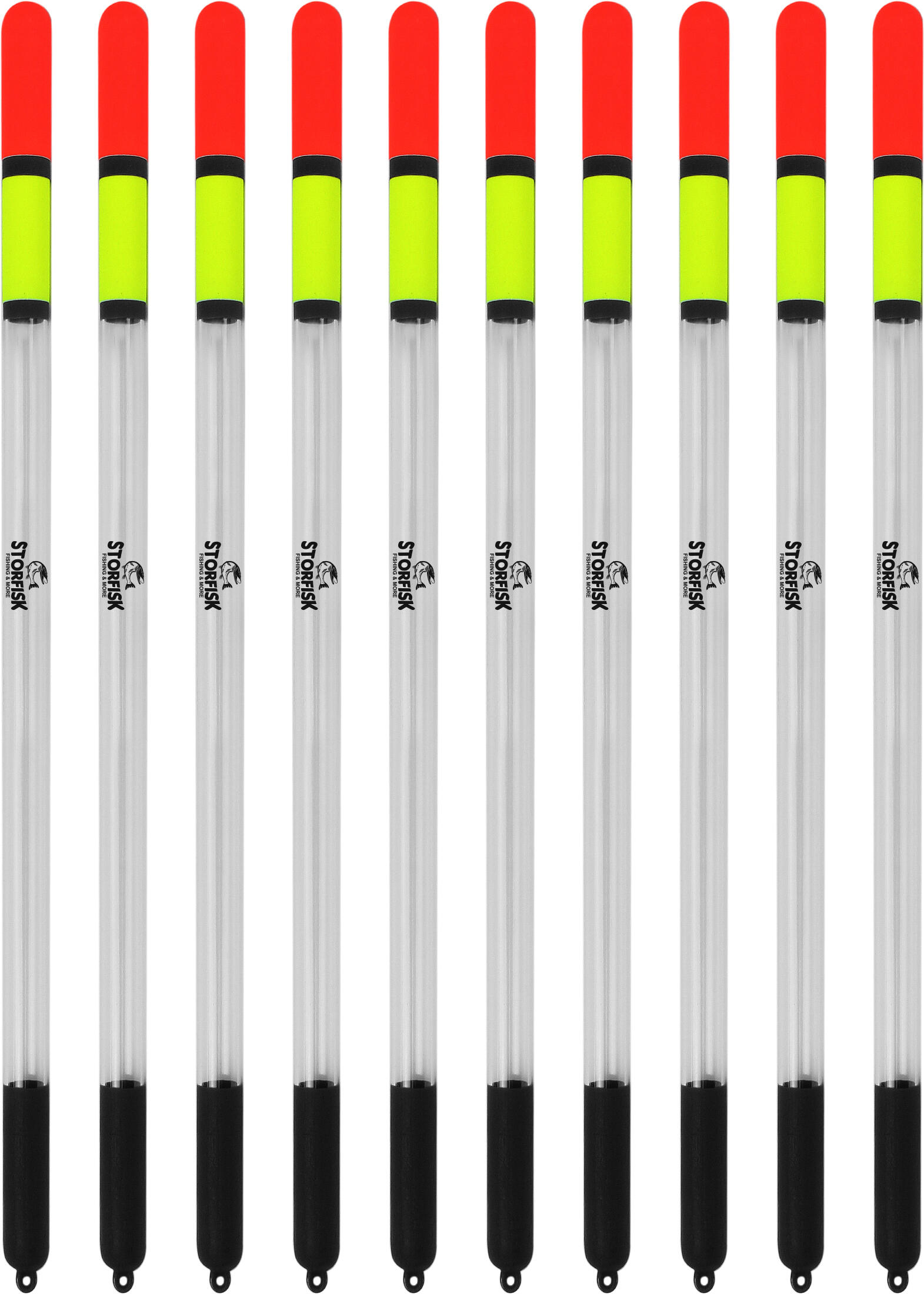 Perfekt für Forellen-Angler! Diese transparenten Storfisk-Posen haben eine gut sichtbare Spitze in Signalorange oder -gelb - auch bei schlechtem Licht kein Problem. In verschiedenen Größen von 1g bis 3g erhältlich, mit exzellenten Wurfeigenschaften. Jede Pose hat eine Öse für einfaches Befestigen. Speziell für Forellen entwickelt, aber natürlich auch für andere Fischarten geeignet. Ob im 5er oder 10er Set - damit bist du bestens ausgerüstet für deinen nächsten Angelausflug. Einfach montieren und den großen Fang machen!