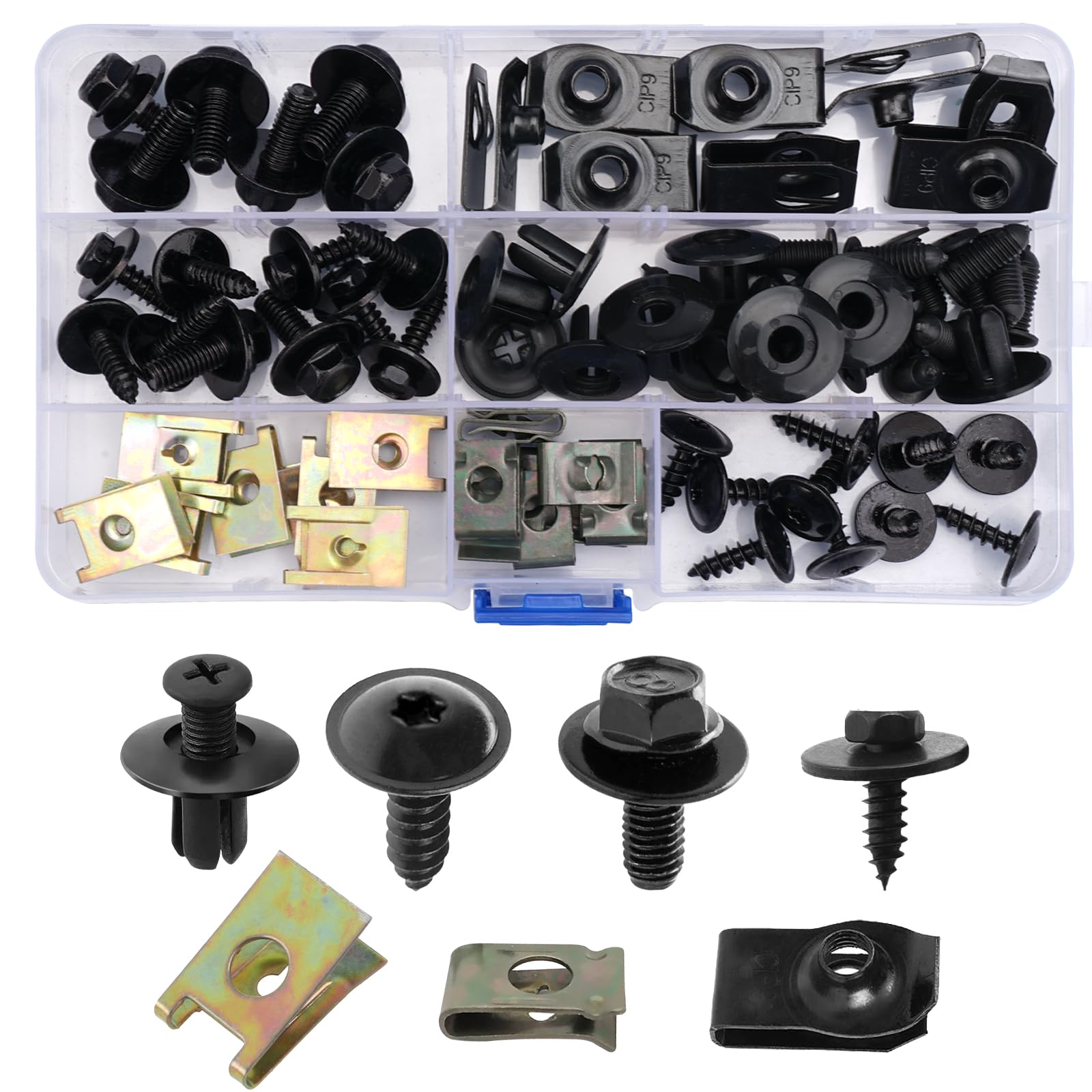 Immer die richtigen Schrauben parat! Dieses 60-teilige Set enthält 30 U-förmige Befestigungselemente und 30 Schrauben (18x19 mm) für alle gängigen Auto-Reparaturen. Aus hochwertigem Kohlenstoffstahl gefertigt, sind sie rostbeständig und extrem langlebig.