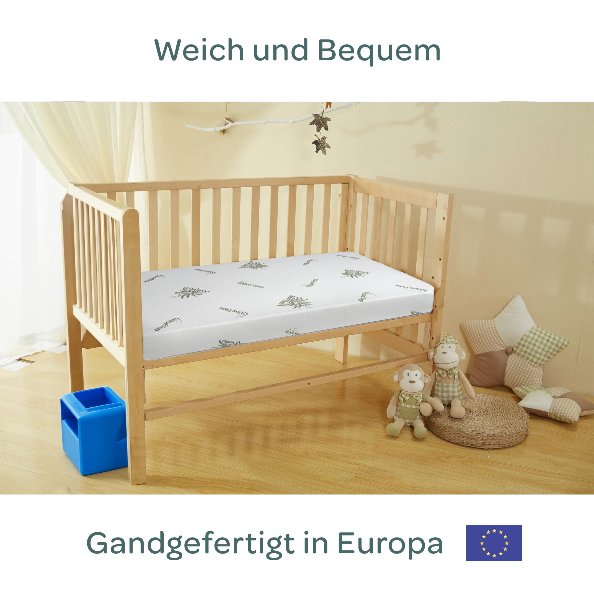 Für alle jungen Eltern, die nur das Beste für ihr Baby wollen! 👶 Die DORMISSIMO Cloe Kindermatratze in 60x120 cm ist absolut perfekt für die ersten Lebensmonate! Mit 10 cm Stärke bietet sie den idealen Komfort für dein Baby. Der perforierte Schaumkern ist das Highlight - er entlastet den Druck auf Blutgefäße und Köpfchen und beugt so Plagiozephalie (Lageabhängige Verformung des Kopfes) vor! Das atmungsaktive Material sorgt dafür, dass Wärme und Feuchtigkeit abtransportiert werden - dein Baby schwitzt nicht so leicht! Und das Beste: Die Matratze ist OEKO-TEX zertifiziert und hat eine antibakterielle Behandlung! Das bedeutet: Keine Milben, keine Bakterien - nur beste hygienische Bedingungen für dein Kleines! Das Stretch-Gewebe ist superweich und sanft zur zarten Babyhaut. Mit nur ca. 3,5 kg Gewicht ist die Matratze leicht zu handhaben. Und DORMISSIMO legt Wert auf umweltfreundliche Produktion unter höchsten Qualitätsstandards! Also, wenn du deinem Baby einen sicheren und gesunden Schlaf ermöglichen willst - diese Matratze ist eine super Investition! Dein Baby wird es dir mit ruhigem Schlaf danken! 💤