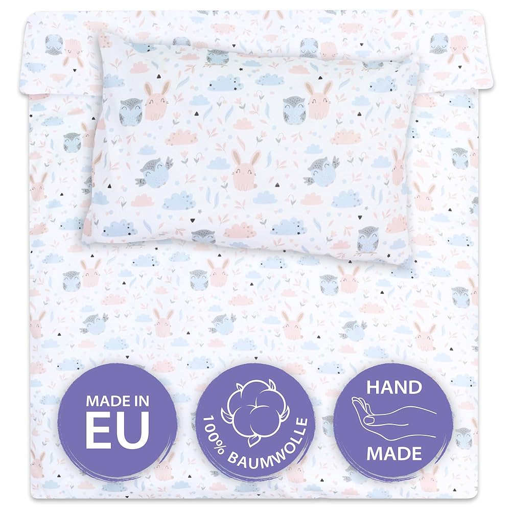 Total süße Babybettwäsche von Amilian - dieses 2-teilige Set besteht aus einem Bettbezug 100x135 cm und einem Kissenbezug 40x60 cm, beide aus 100% reiner Baumwolle. Hergestellt in der EU und ohne chemischen Geruch - absolut unbedenklich für dein Baby. Das Besondere: Kein Reißverschluss! Stattdessen haben beide Teile einen praktischen Hotelverschluss - keine Gefahr des Verschluckens und nichts kann kaputtgehen. Super weich und angenehm auf der Haut, auch nach häufigem Waschen. Die Qualität ist einfach top - die Verarbeitung tadellos und das Preis-Leistungs-Verhältnis unschlagbar. Perfekt fürs Babybett, Beistellbett, Stubenwagen oder als Gästebettchen. In neutralen Designs passt sie sowohl für Jungen als auch Mädchen. Einfach bei 30°C in der Maschine waschen und schon ist sie wieder frisch. Ein wunderbares Geschenk zur Geburt oder einfach für mehr Gemütlichkeit im Kinderzimmer!