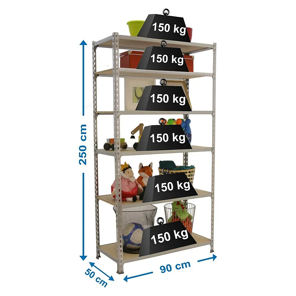 Endlich Ordnung in Garage, Keller oder Werkstatt! Dieses Simonrack Schwerlastregal ist ein echter Platzwunder. Mit 250x90x40 cm und 6 Regalböden bietet es jede Menge Stauraum. Jeder Boden hält satte 180 kg aus - da kannst du getrost Werkzeuge, Vorräte oder schwere Kisten verstauen. Das schraubenlose Montagesystem ist super einfach: Nur mit Hammer zusammenklopfen, fertig! Aus robustem Stahl in Anthrazit/Verzinkt, made in Europe. Mit 4 Kunststofffüßen zum Bodenschutz. Perfekt für alle, die ihr Chaos endlich in den Griff kriegen wollen!